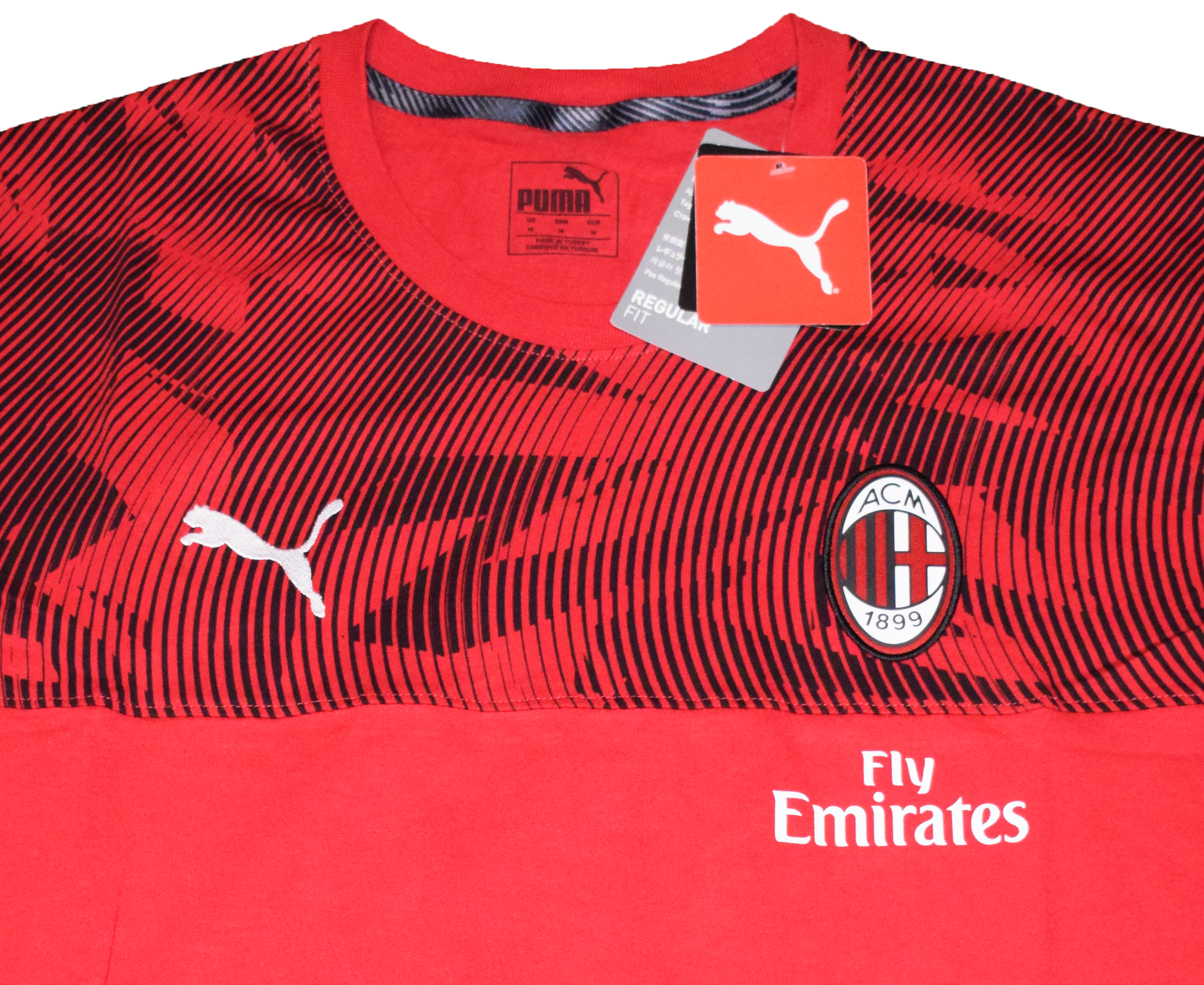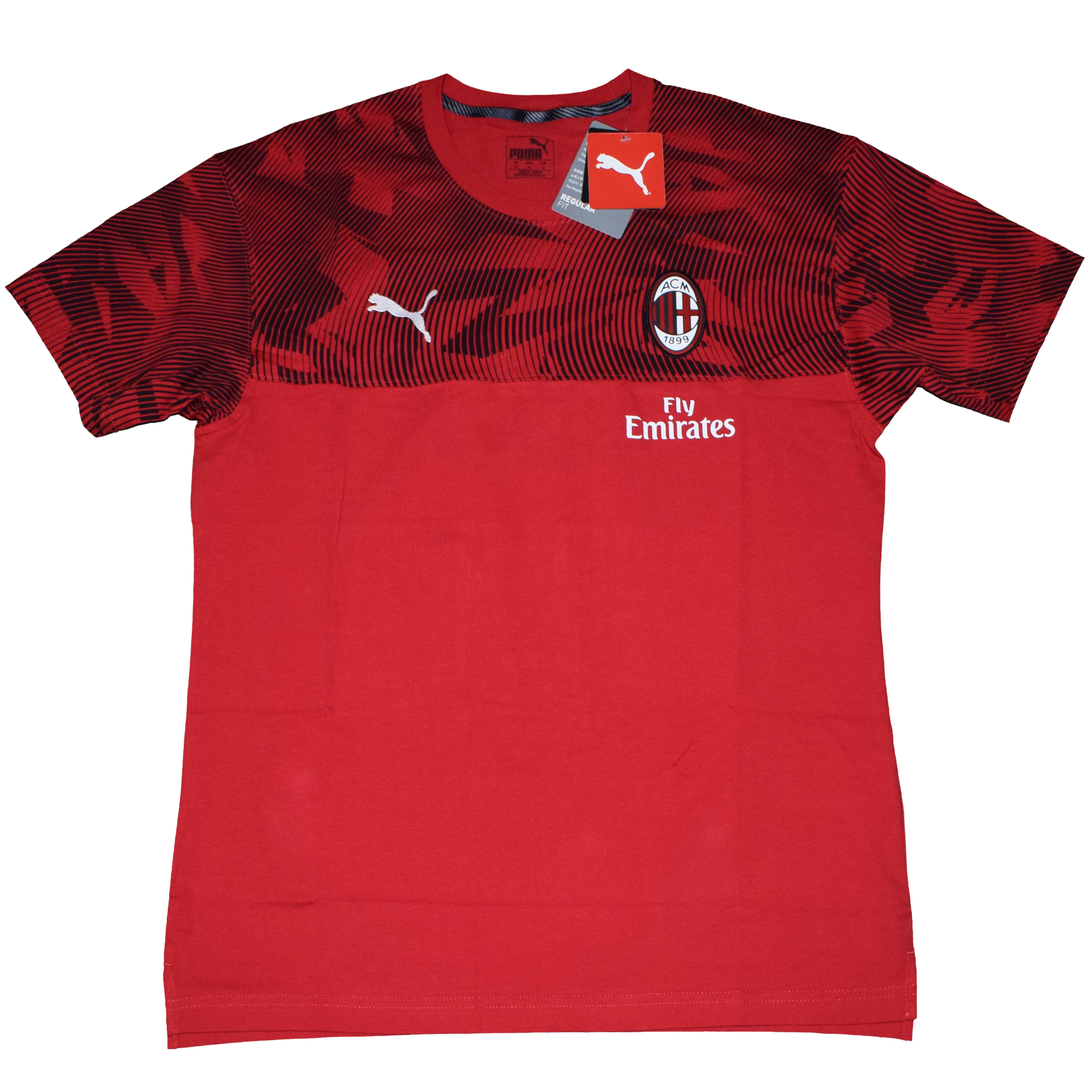 Προπονήσου όπως οι Ροσονέρι με την επίσημη φανέλα προπόνησης της Μίλαν για τη σεζόν 2019/20 από την Puma, με έντονο κόκκινο και μαύρο σχέδιο. Αυτή η φανέλα είναι ολοκαίνουργια με ετικέτες (BNWT), κατασκευασμένη για απόδοση και άνεση. Μέγεθος Medium.