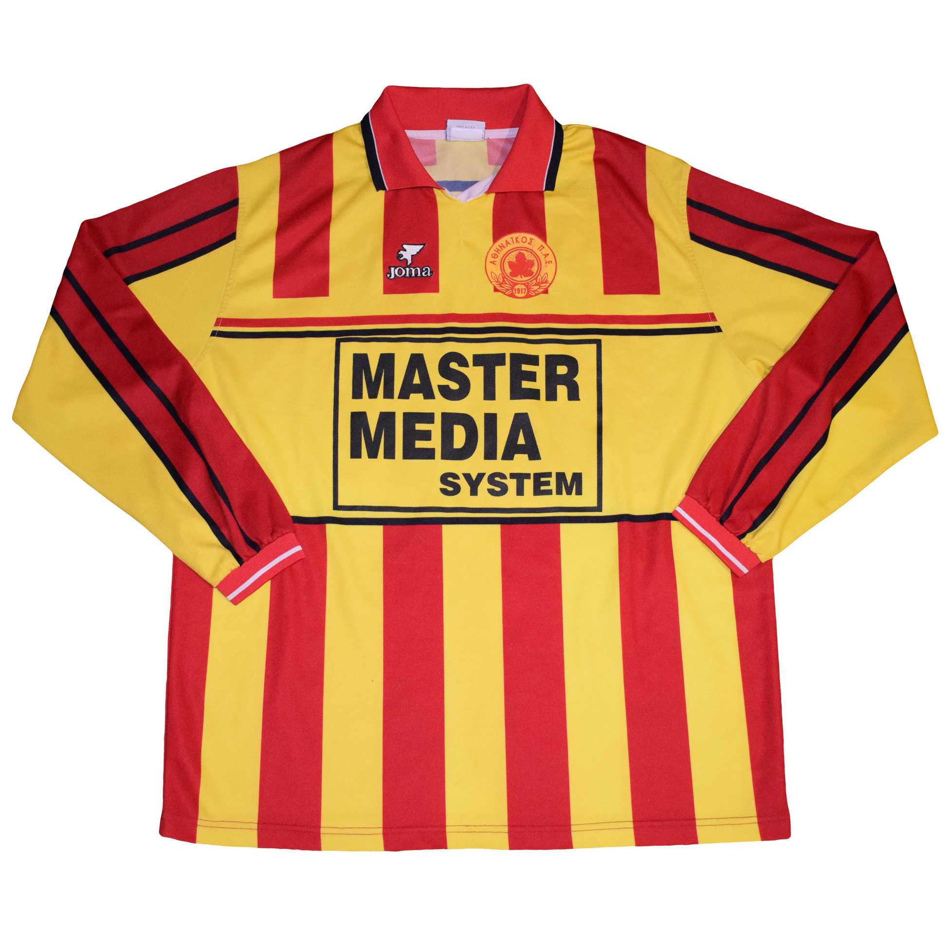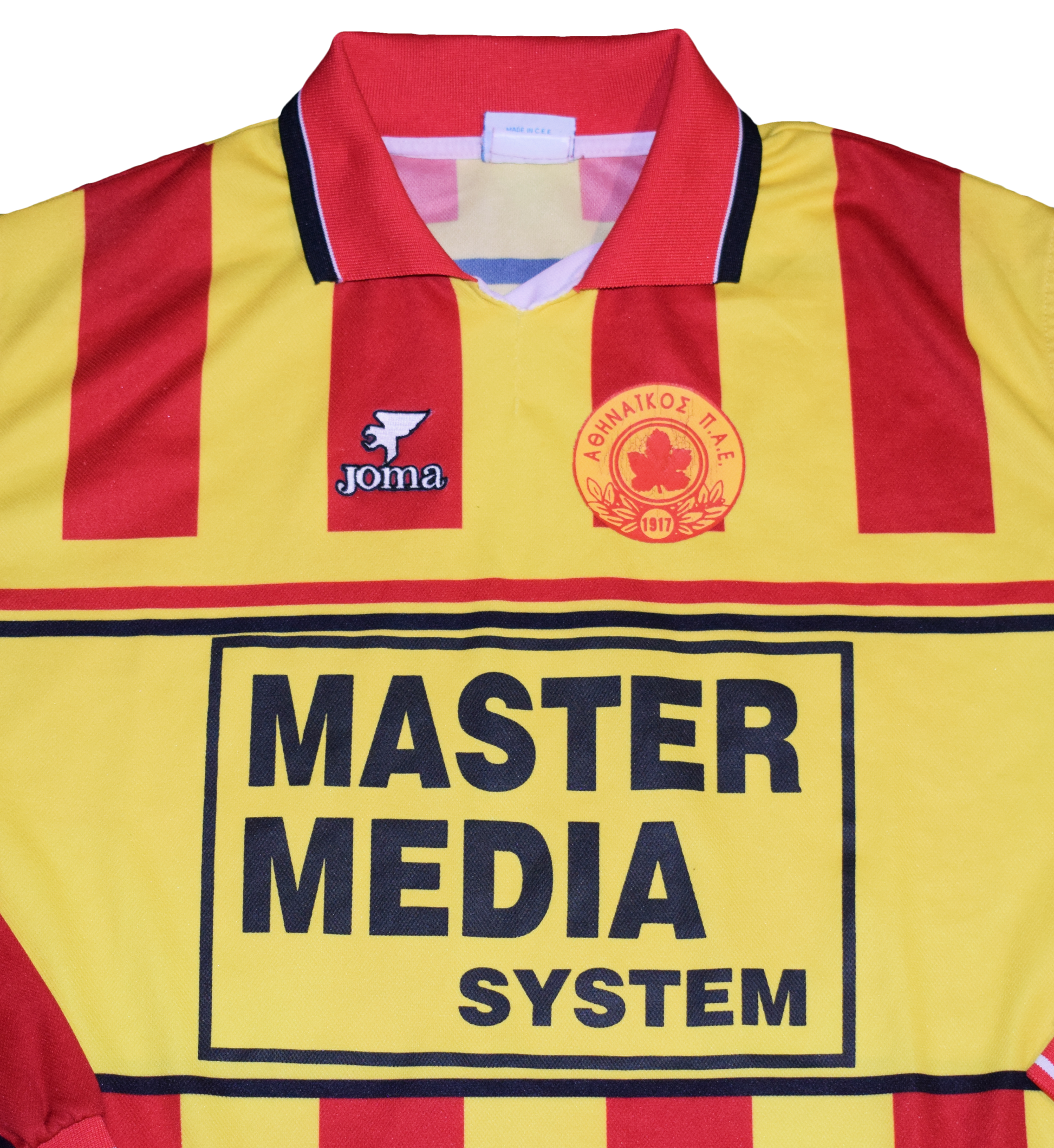 Ένα πραγματικά σπάνιο κομμάτι της ιστορίας του ελληνικού ποδοσφαίρου. Αυτή η εντός έδρας φανέλα του Αθηναϊκού για την περίοδο 2001/02 , με μακριά μανίκια και μέγεθος Large , φορεμένη και σε επίσημους αγώνες. Διαθέτει στάμπα Κοσιφολόγου, παίχτης της ομάδας . Κατασκευασμένη από την Joma , διατίθεται στα εντυπωσιακά κίτρινα και κόκκινα χρώματα του συλλόγου, άμεσα αναγνωρίσιμη και βαθιά ριζωμένη στην τοπική ποδοσφαιρική κουλτούρα.