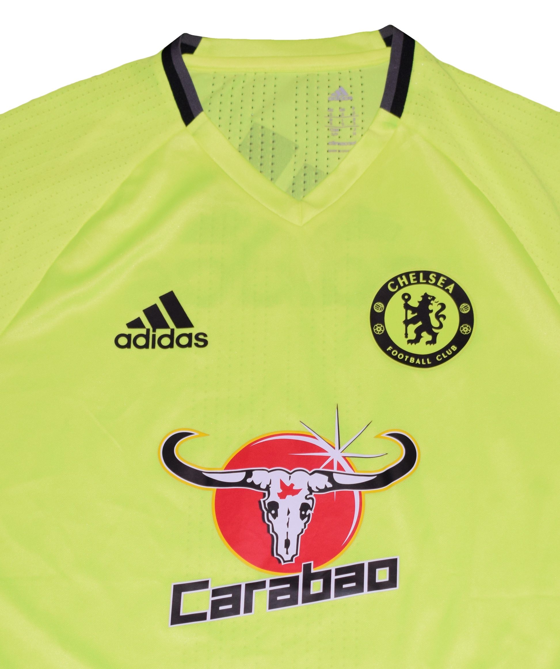 Με τον εντυπωσιακό χρωματικό συνδυασμό σε κίτρινο βολτ με μαύρες λεπτομέρειες και τον χορηγό της Carabao , αυτή η φανέλα φορέθηκε κατά τη διάρκεια μιας θρυλικής σεζόν όπου η Τσέλσι κατέκτησε τον τίτλο της Πρέμιερ Λιγκ υπό τις οδηγίες του Αντόνιο Κόντε , παίζοντας κυρίαρχο ποδόσφαιρο υψηλής έντασης.