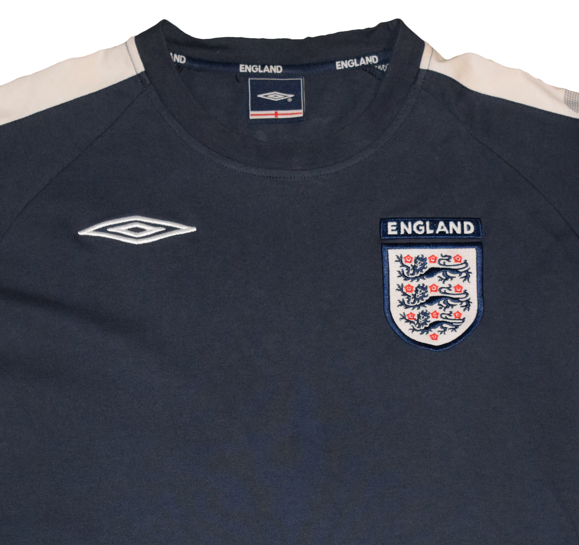 Επίσημο φούτερ προπόνησης Αγγλίας από τη σεζόν 1999/2000, κατασκευασμένο από την Umbro σε μπλε σκούρο με λευκές λεπτομέρειες. Σχεδιασμένο για άνεση και απόδοση, διαθέτει κλασική εφαρμογή και ελαφρύ ύφασμα κατάλληλο για προπόνηση ή casual ντύσιμο.