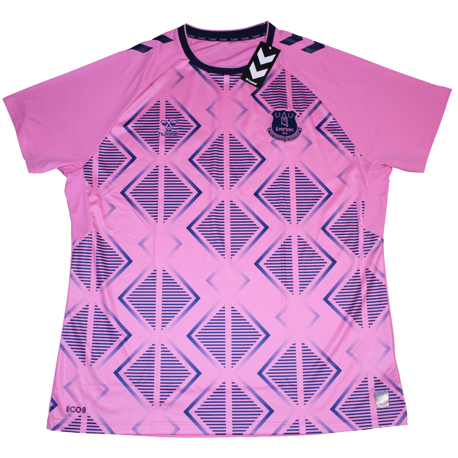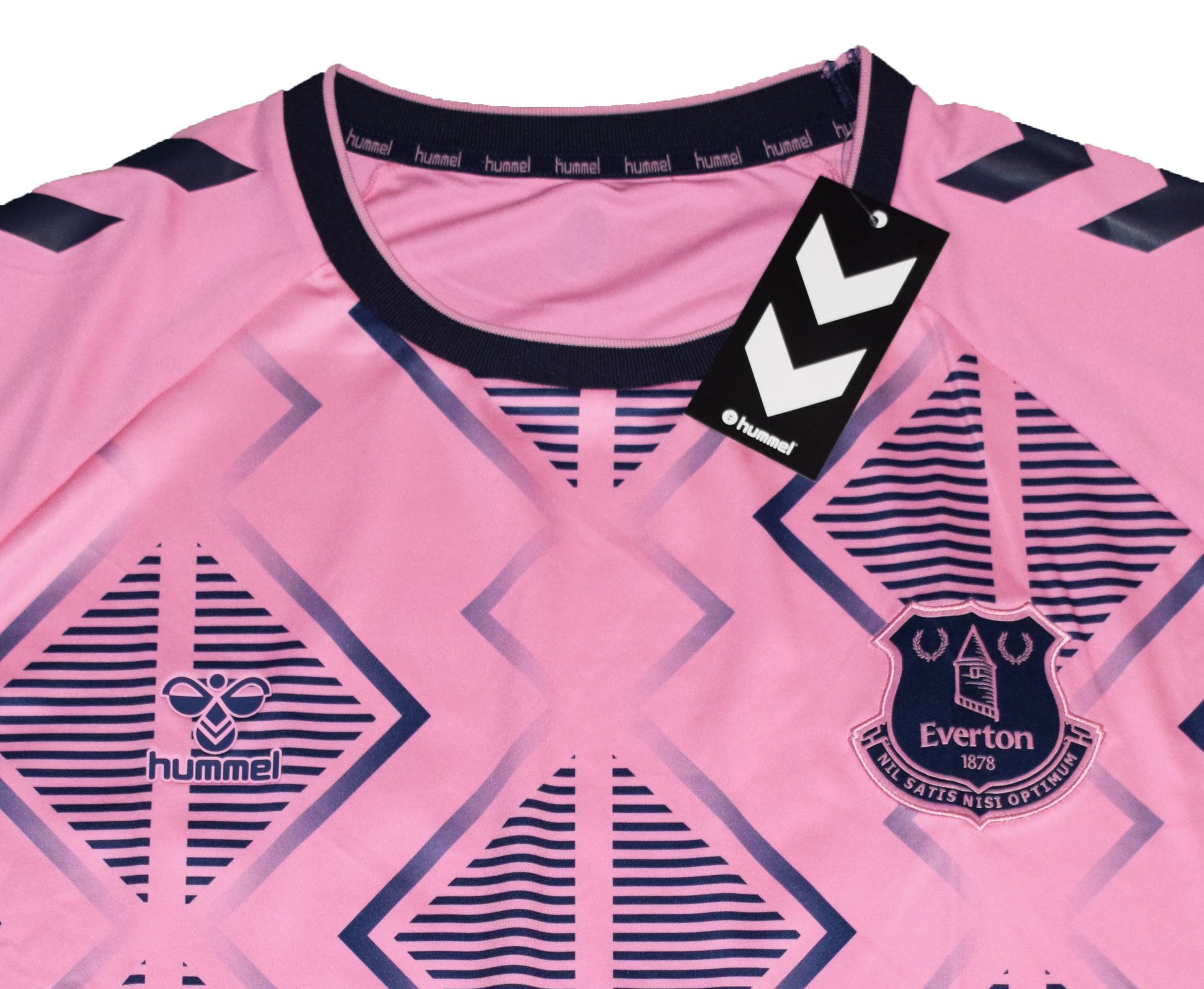 Η εκτός έδρας εμφάνιση της Έβερτον για την περίοδο 2022/23 , κατασκευασμένη από την Hummel , προσφέρει μια εντυπωσιακή οπτική ταυτότητα με την έντονη ροζ βάση και τις μπλέ γραφικές λεπτομέρειες εμπνευσμένες από την ιστορία του συλλόγου και τη σύνδεση της με την αρχιτεκτονική της Λίβερπουλ. Η φανέλα διαθέτει τα χαρακτηριστικά σιρίτια της Hummel στους ώμους και μια κομψή γραμμή, σε συνδυασμό με αναπνεύσιμα υλικά για μέγιστη άνεση.