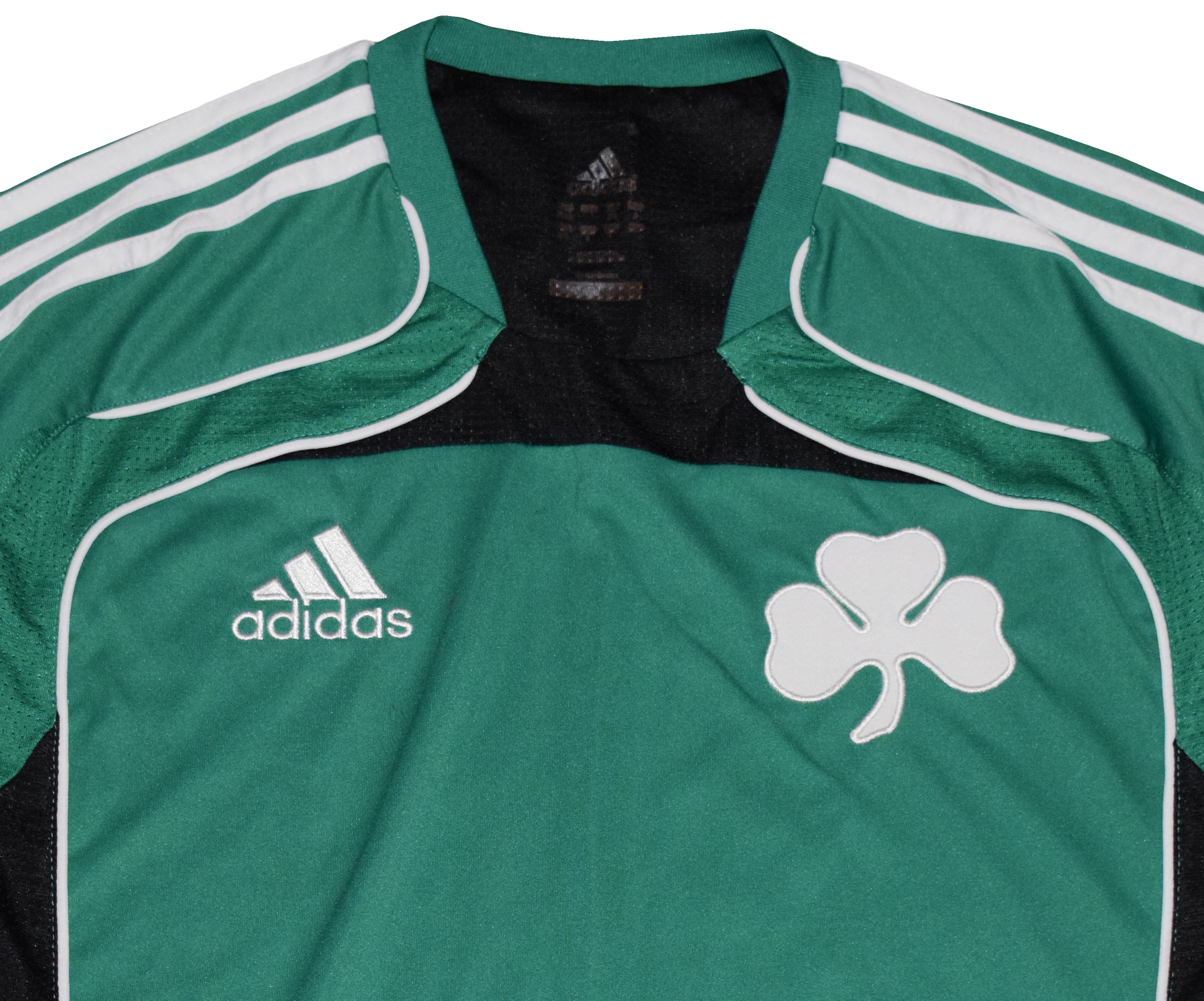 Επίσημη φανέλα προπόνησης του Παναθηναϊκού από τη σεζόν 2010/11, κατασκευασμένη από την adidas. Με την παραδοσιακή πράσινη βάση του συλλόγου με μαύρες πλαϊνές λεπτομέρειες και λευκές ραφές, αυτό το σχέδιο αποτελεί κλασικό παράδειγμα της αισθητικής προπονητικών εμφανίσεων της adidas από τις αρχές της δεκαετίας του 2010. Καθαρή, λειτουργική και άμεσα αναγνωρίσιμη, αντανακλά την ταυτότητα του Παναθηναϊκού σε μια αγωνιστική περίοδο.