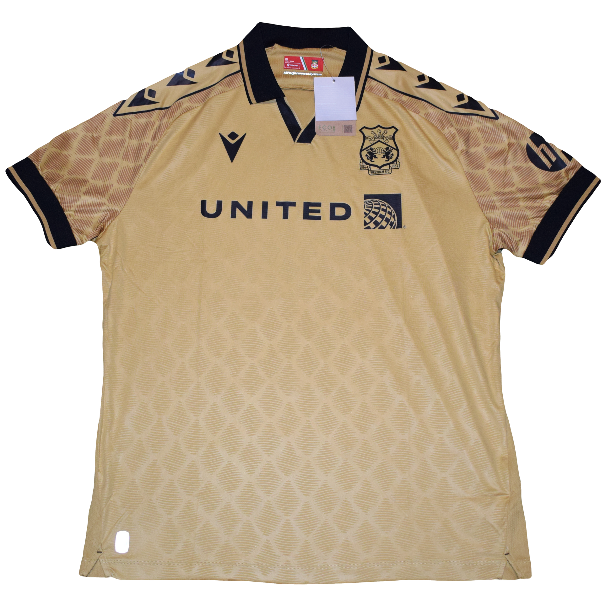 Επίσημη τρίτη φανέλα της Ρέξαμ AFC για τη σεζόν 2024/25, κατασκευασμένη από την Macron και ολοκαίνουργια με ετικέτες. Με εντυπωσιακή χρυσή βάση με μαύρες λεπτομέρειες, αυτή η εμφάνιση αντανακλά τη σύγχρονη ταυτότητα του συλλόγου, ενώ παράλληλα ξεχωρίζει ως ένα από τα πιο τολμηρά πρόσφατα σχέδια της Ρέξαμ.