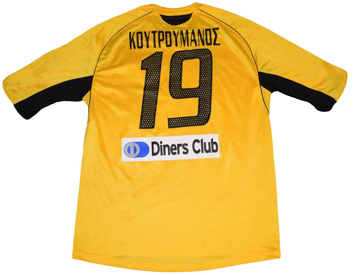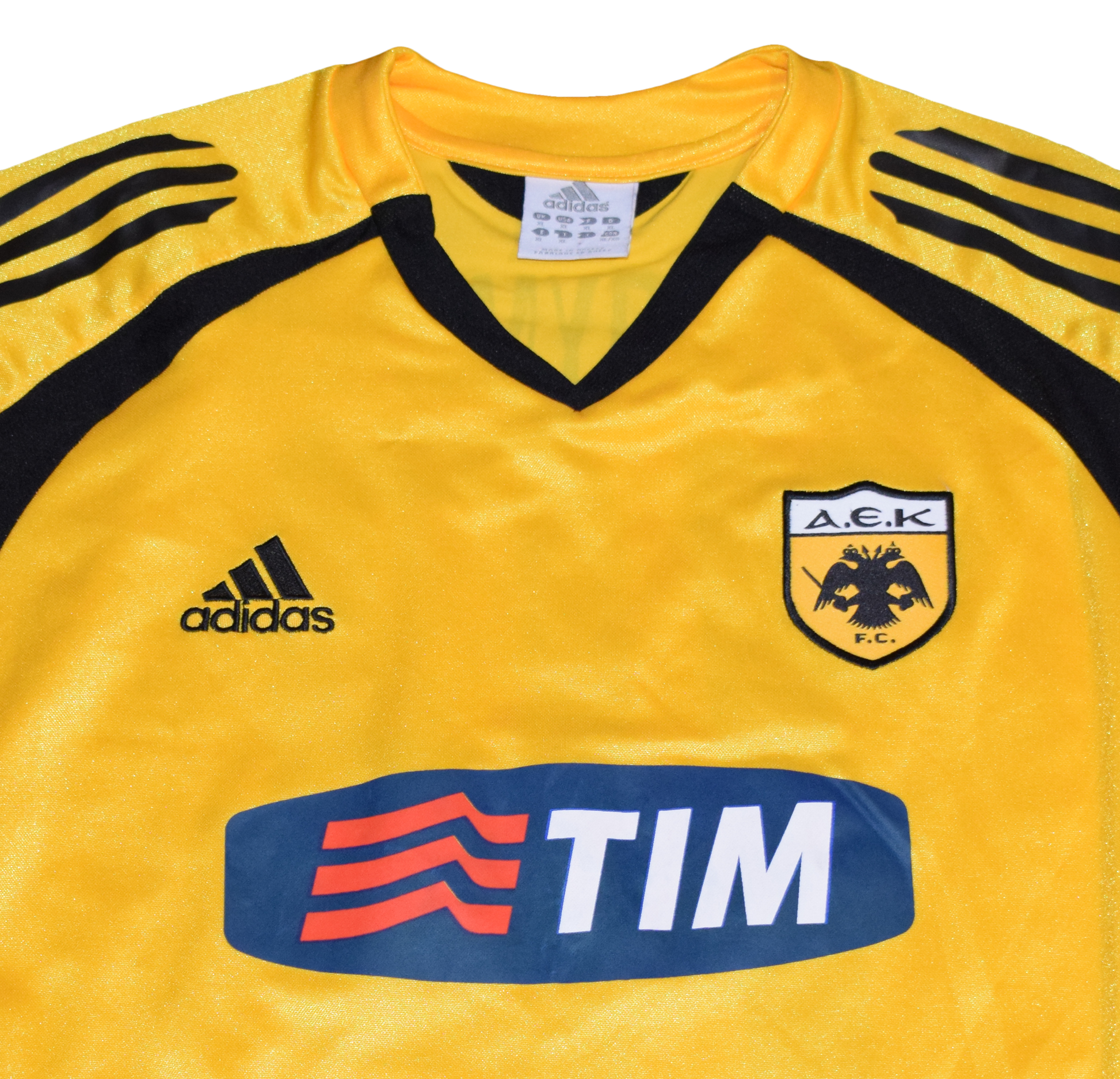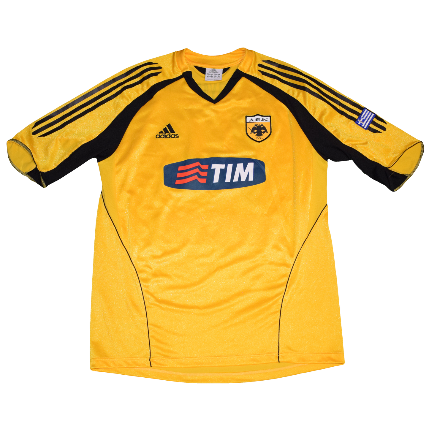 This kit features the bold yellow-and-black design that defined the mid-2000s era of AEK, a time when the club was reestablishing itself among Greece's elite, with players like Nikolaidis, Liberopoulos, and a young Sokratis Papastathopoulos rising through the ranks.