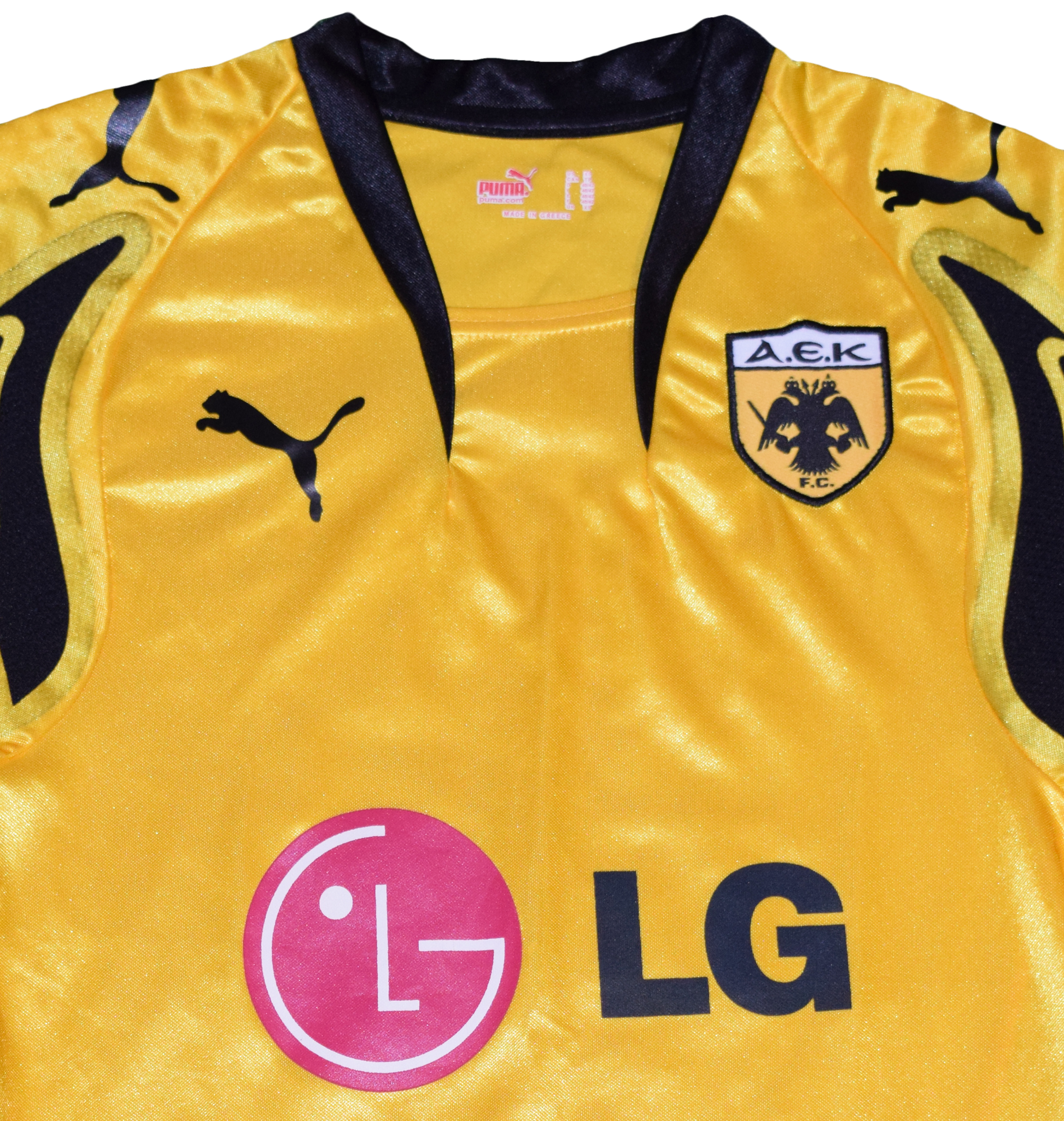 Classic AEK gold from a powerful season. This 2007/08 home shirt, size XS, made by Puma, features the iconic LG sponsor, bold black detailing on the shoulders, and the traditional yellow-and-black identity that defined late-2000s AEK. The shirt remains in great condition, making it an excellent piece for collectors.