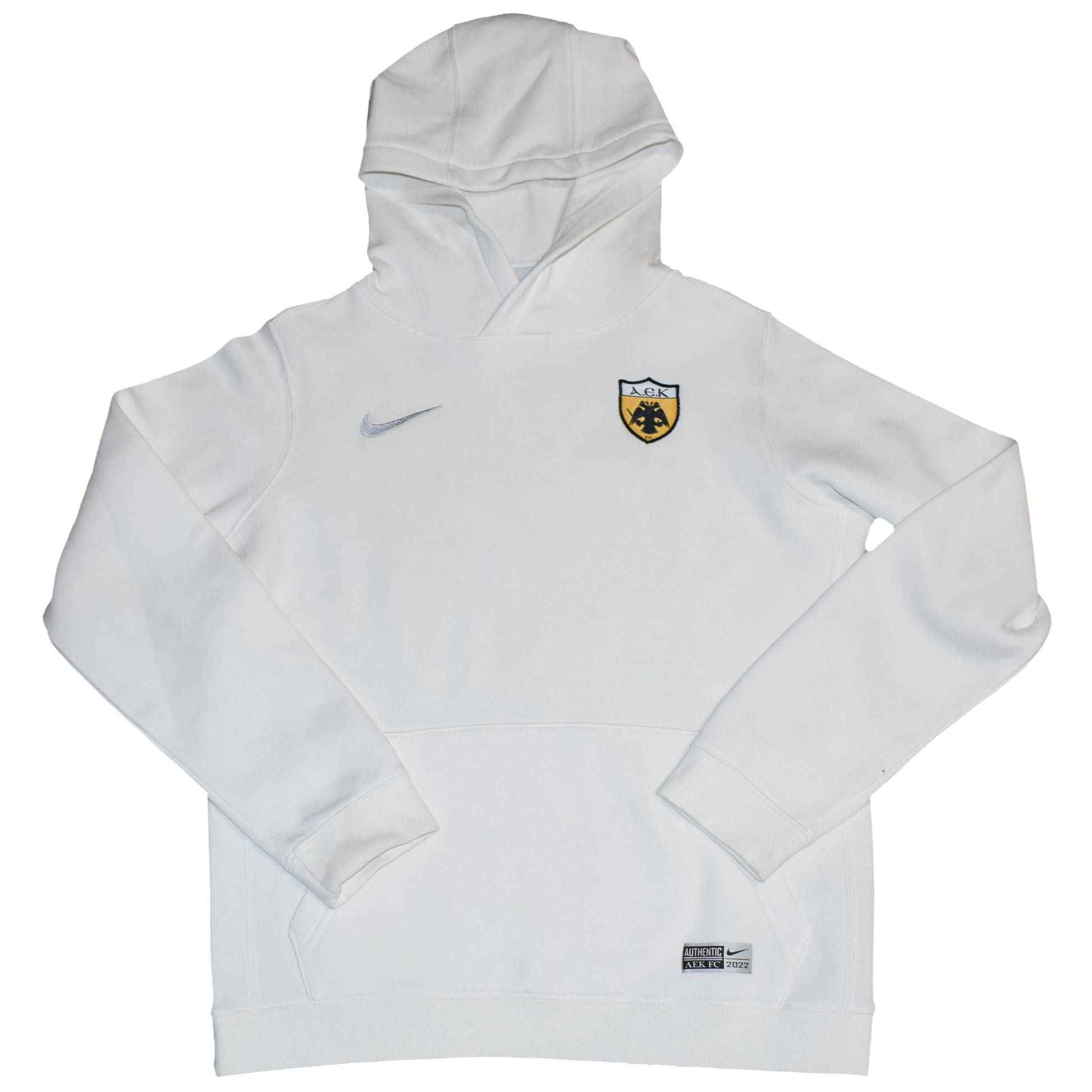AEK Athens 2022/23 Nike Hoodie in Youth Medium. A sleek and stylish official team hoodie featuring the embroidered club crest and Nike swoosh. Made from premium materials for comfort and warmth. Perfect for young fans or collectors. Excellent condition and a rare find from a strong 2022/23 season where AEK Athens clinched the Super League Greece title and the Greek Cup, led by standout performances from Levi Garcia and Sergio Araujo.