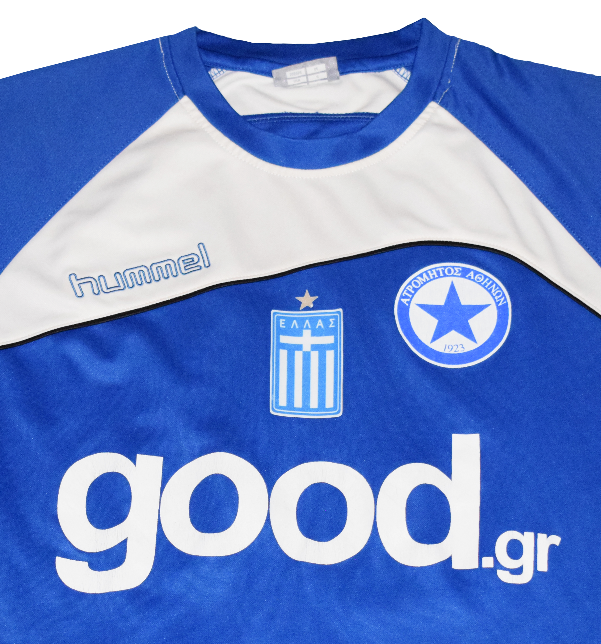 Details: A clean and functional training top from Atromitos’ 2011/12 season, featuring the iconic “good.gr” sponsor, Hummel chevrons, and a bold blue-and-white color scheme. The number 11 print on the back suggests it may have been used in training or unofficial club activities.