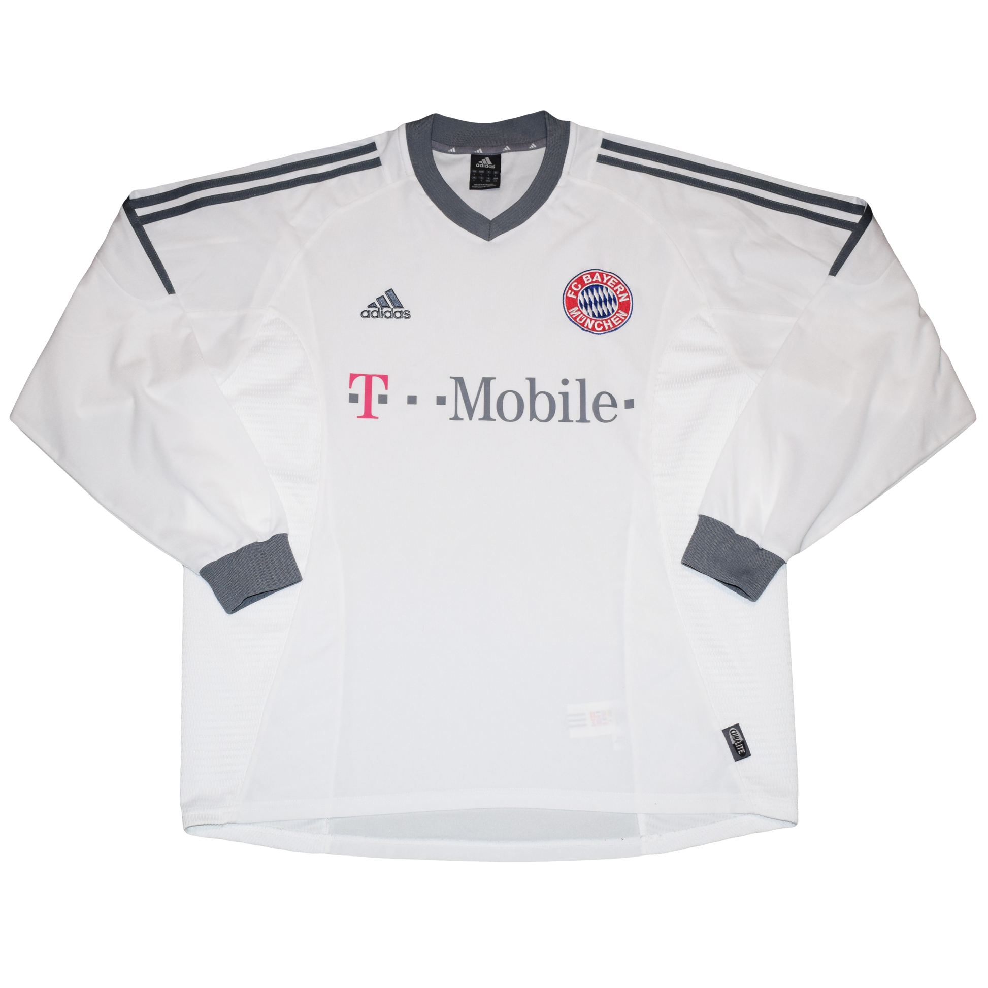 A true piece of early 2000s football history, this Bayern München 2002/03 Away Kit, size Large, features a white base with subtle grey detailing, crafted by Adidas. The longsleeve version is especially sought after by collectors, offering an authentic retro look from one of Europe’s most dominant clubs.