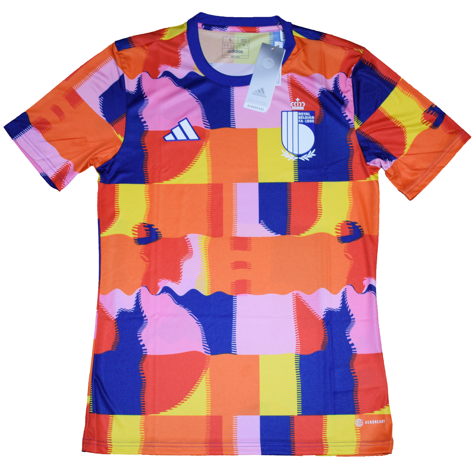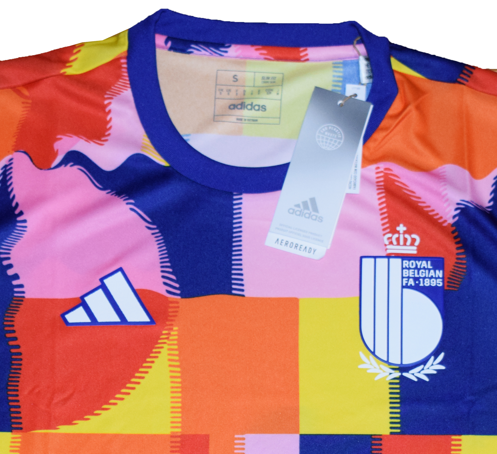 This pre-match shirt features a vibrant, multicolor abstract pattern inspired by the fireworks of Belgium’s iconic Tomorrowland music festival. The design symbolizes unity, diversity, and celebration, aligning with the shared values of Adidas, the Royal Belgian Football Association (RBFA), and Tomorrowland. Size Small. Brand New With Tags.