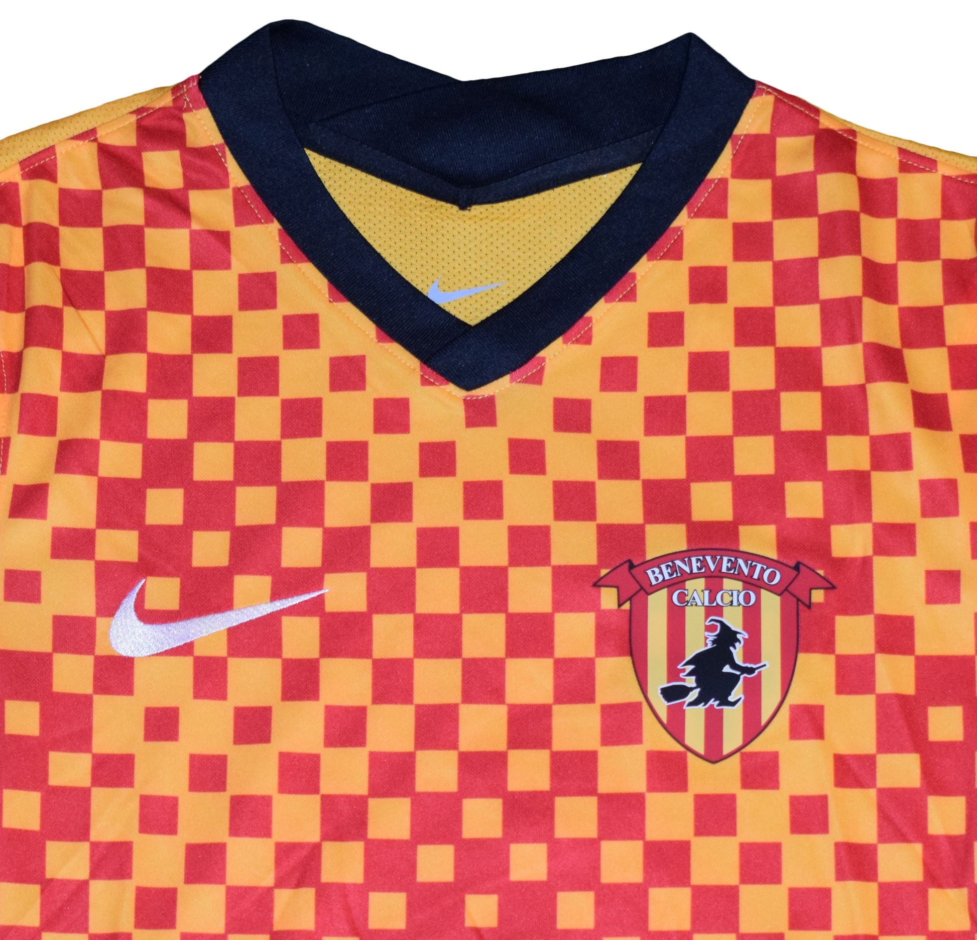 A rare Nike-produced Benevento shirt, featuring the club’s trademark yellow-and-red checkered pattern, a bold look that immediately stands out in any collection.