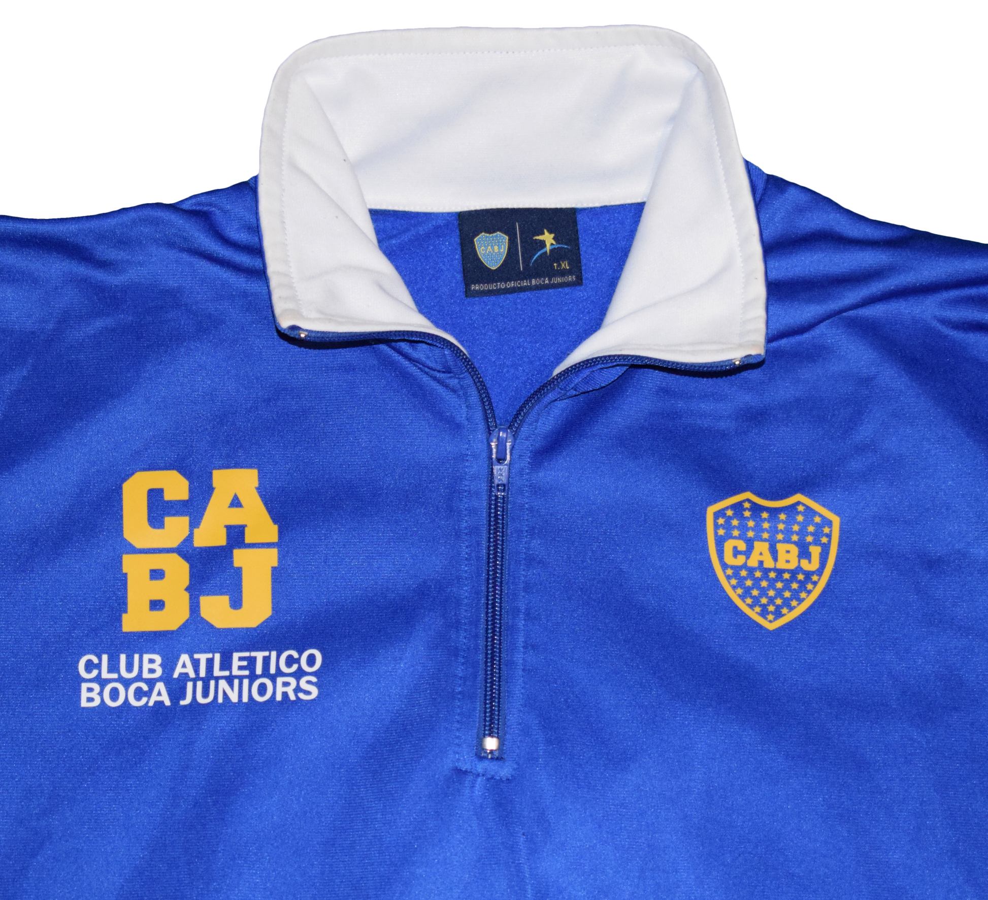 Official Boca Juniors half-zip training sweatshirt, featuring the club’s classic blue and yellow colour scheme. The design includes the CABJ crest on the chest and bold “Club Atlético Boca Juniors” lettering, making it instantly recognisable to fans of Argentina’s most successful club.