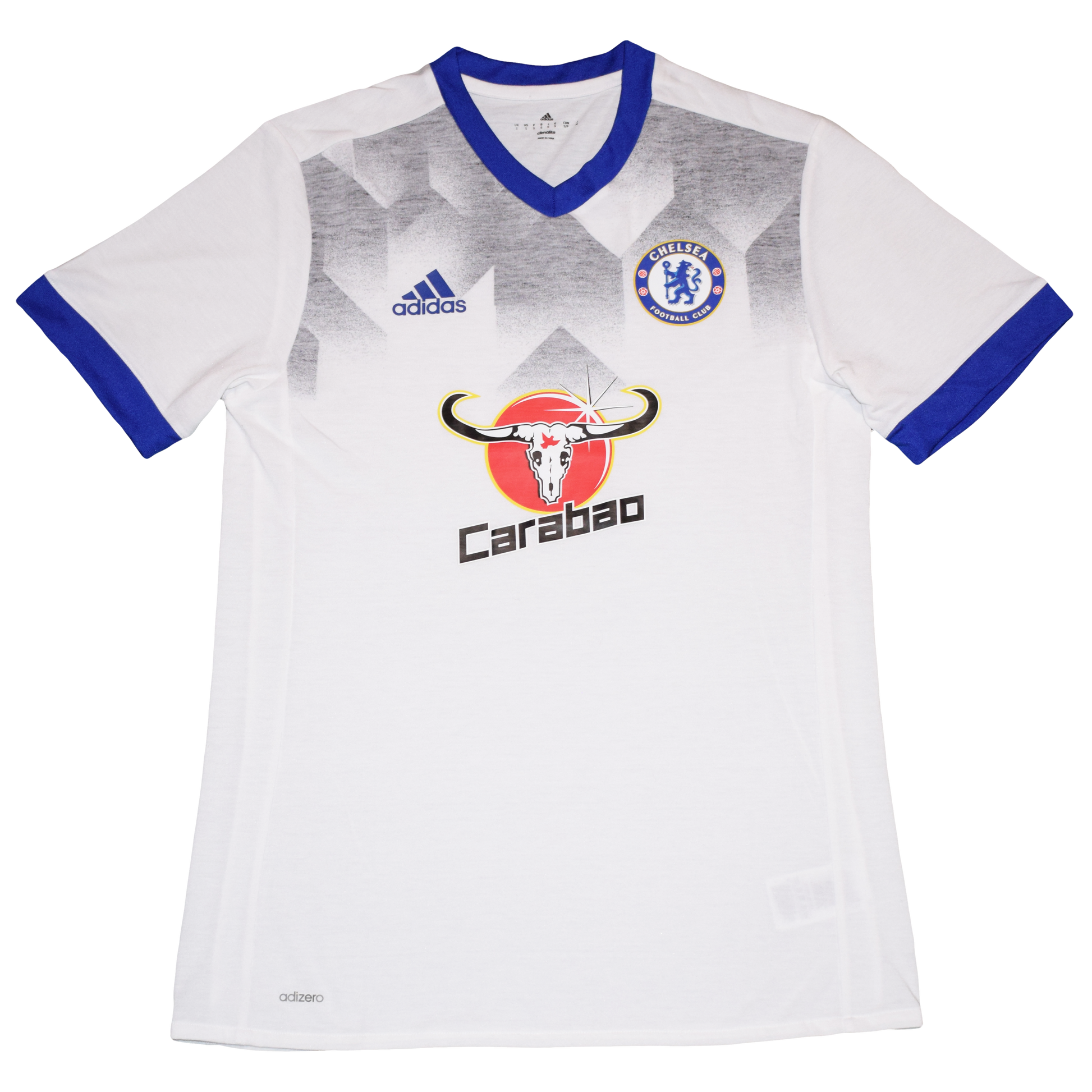 Official Chelsea training shirt from the 2016/17 season, crafted in white by Adidas with lightweight Adizero technology for maximum comfort and performance. This rare edition features the Carabao sponsor logo, making it a standout piece for collectors and fans.