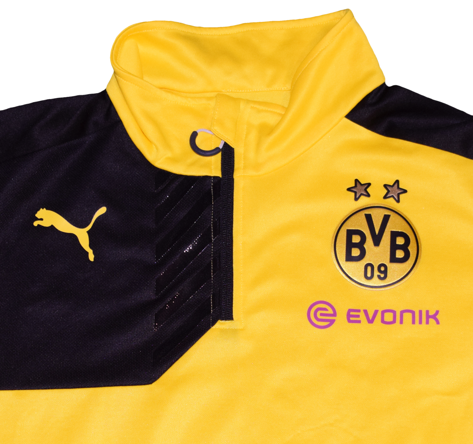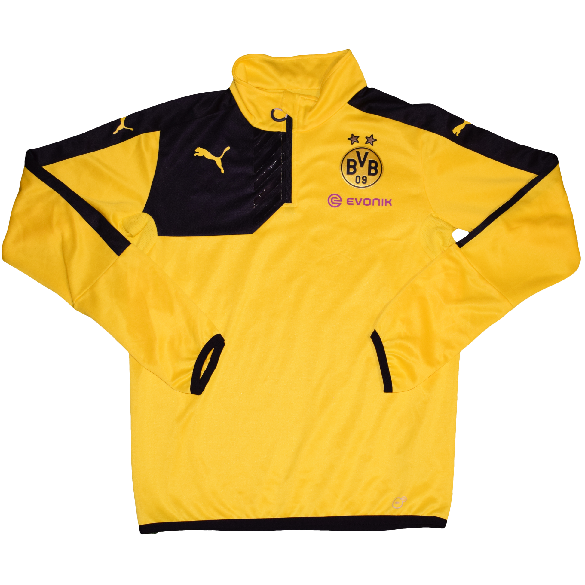 Train like the champions in this Dortmund half-zip sweatshirt by Puma, size Medium. Worn during the 2015/16 season, when Dortmund finished 2nd in the Bundesliga, featuring stars like Marco Reus and Pierre-Emerick Aubameyang.