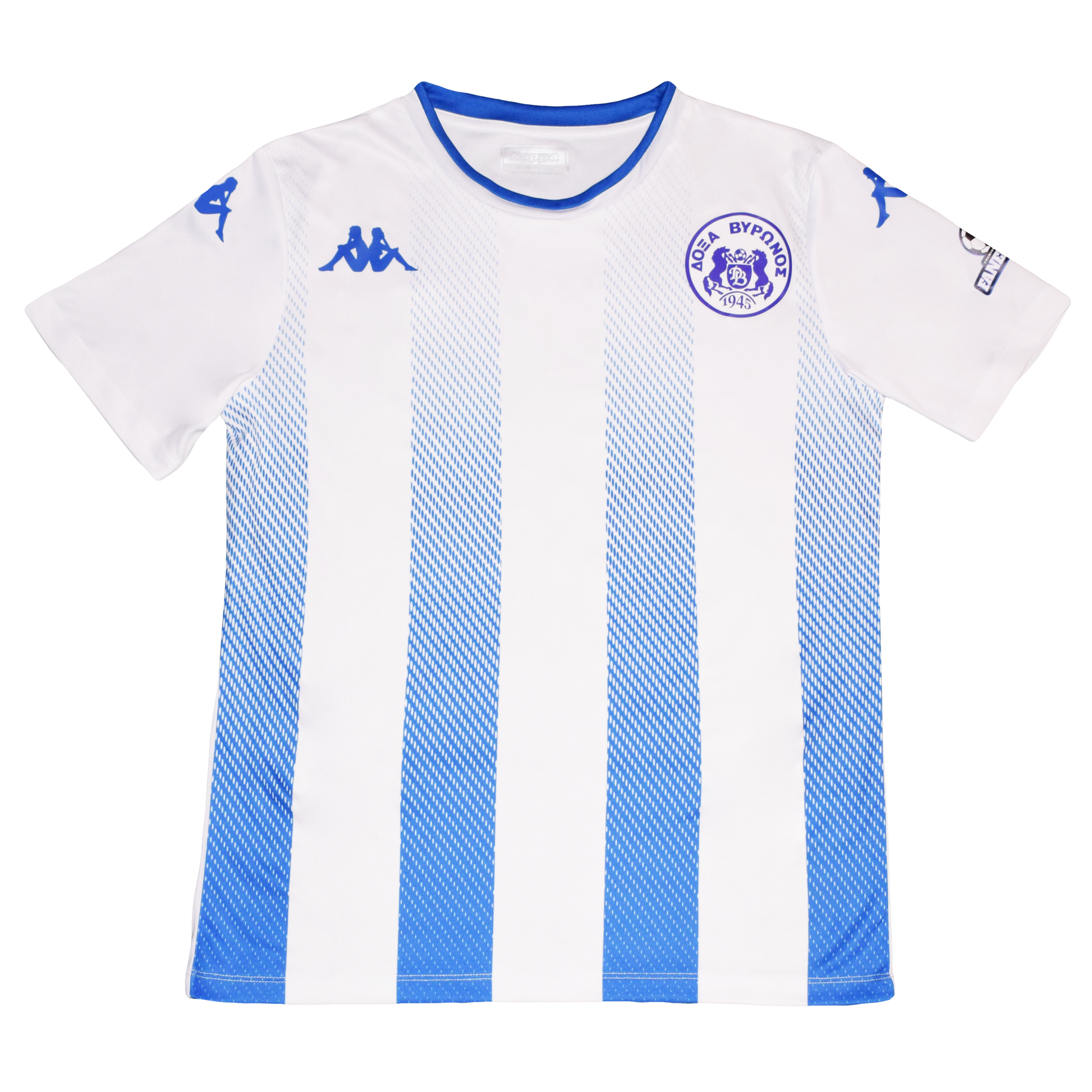 Featuring crisp white with gradient royal-blue stripes, this design pays homage to the colors of Greece with purity, strength, and unity, the same values that define Doxa Vironos. The elevated club crest sits slightly higher on the chest, a deliberate design choice symbolizing pride carried closer to the heart. It echoes the contemporary styling seen in leading European teams, blending tradition with a forward-thinking edge.