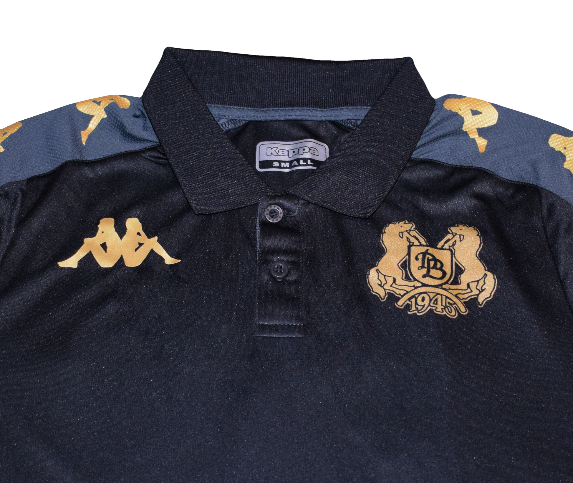 Refined in deep black with striking gold detailing, it captures the perfect balance between athletic edge and understated elegance. The heat printed gold crest and signature Kappa detailing across the shoulders celebrate Doxa’s proud legacy with modern sophistication.