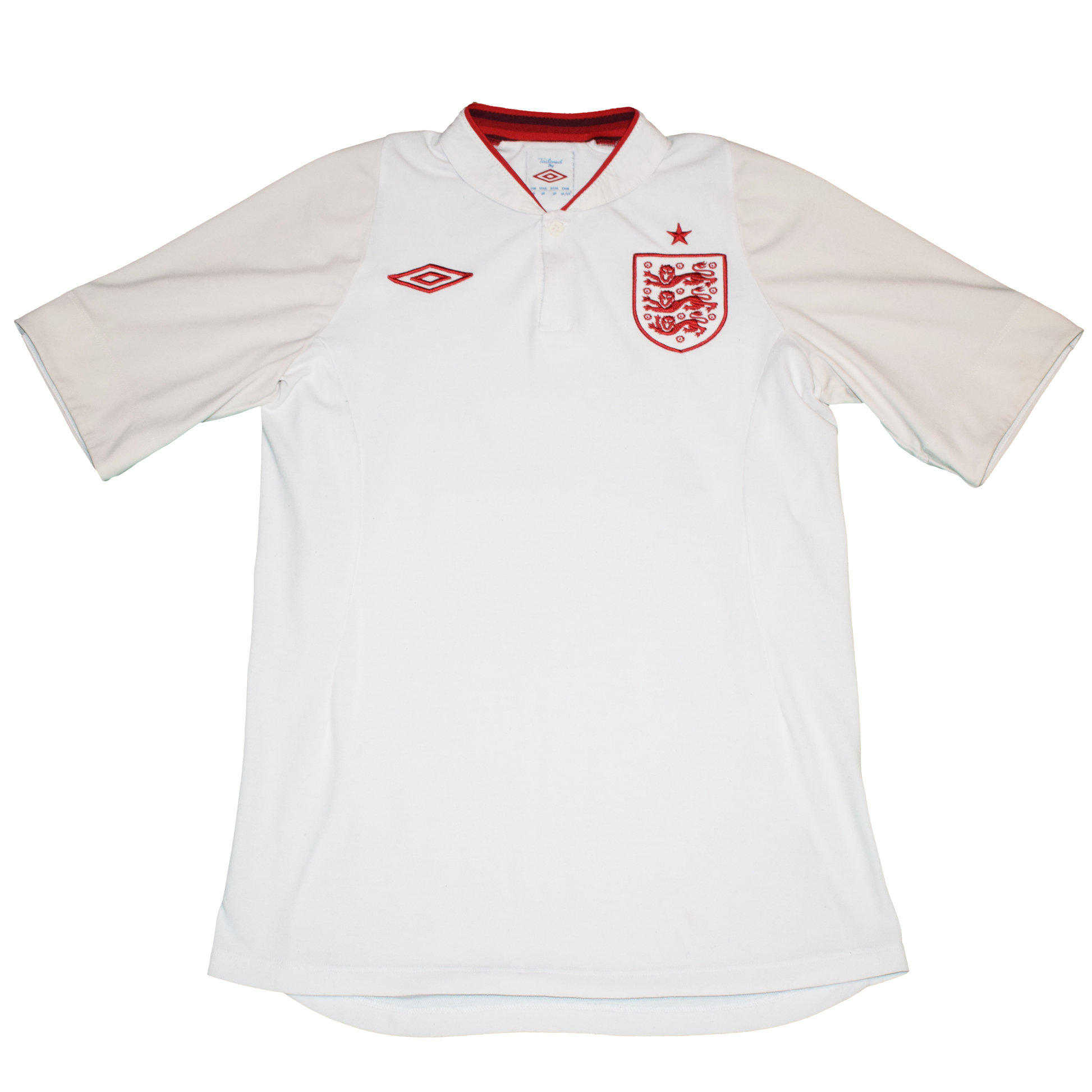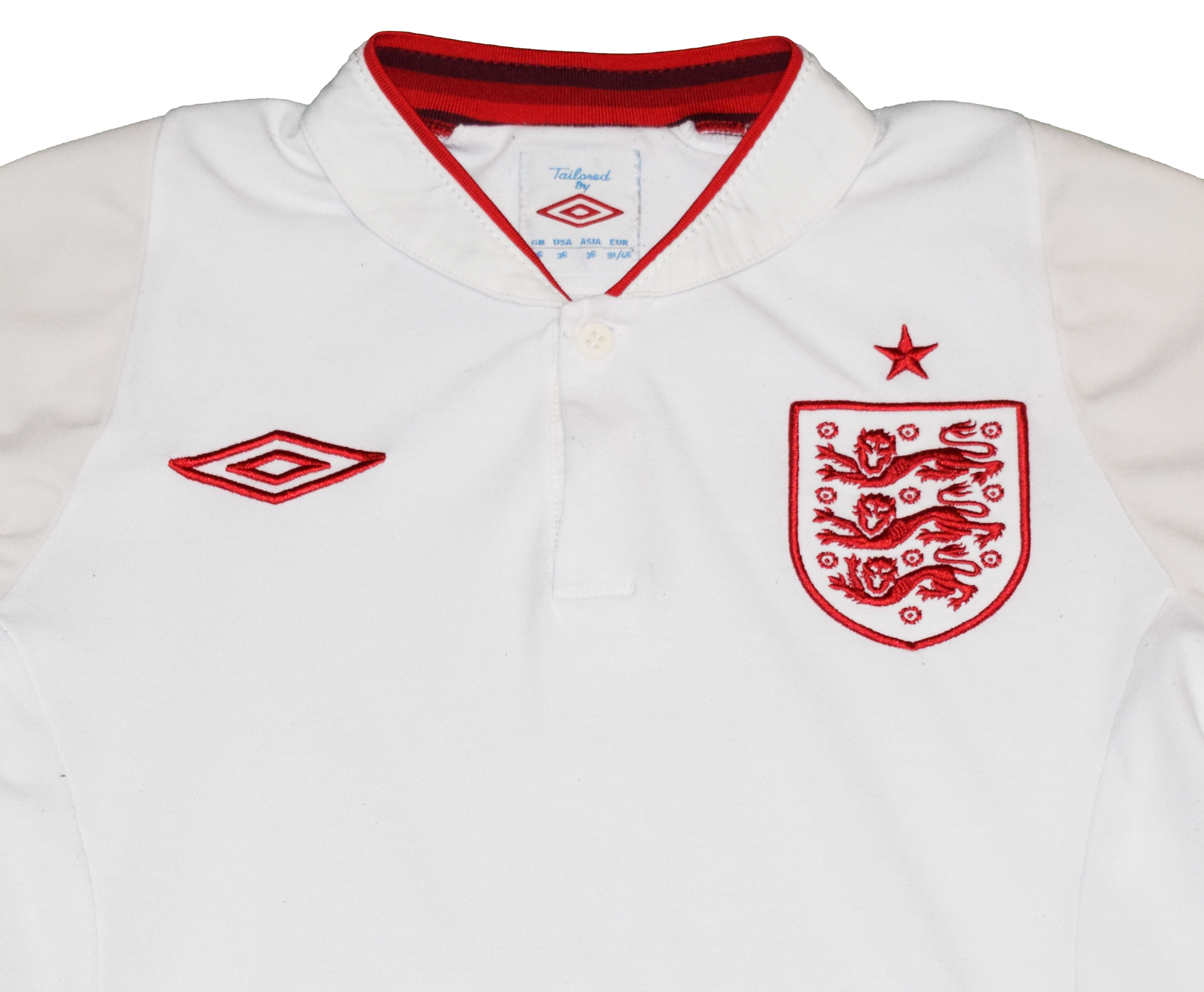 A clean and elegant kit by Umbro, this all-white shirt with red trim was worn during UEFA Euro 2012. Features the iconic three lions crest in striking red with a single star above, commemorating England's 1966 World Cup win.