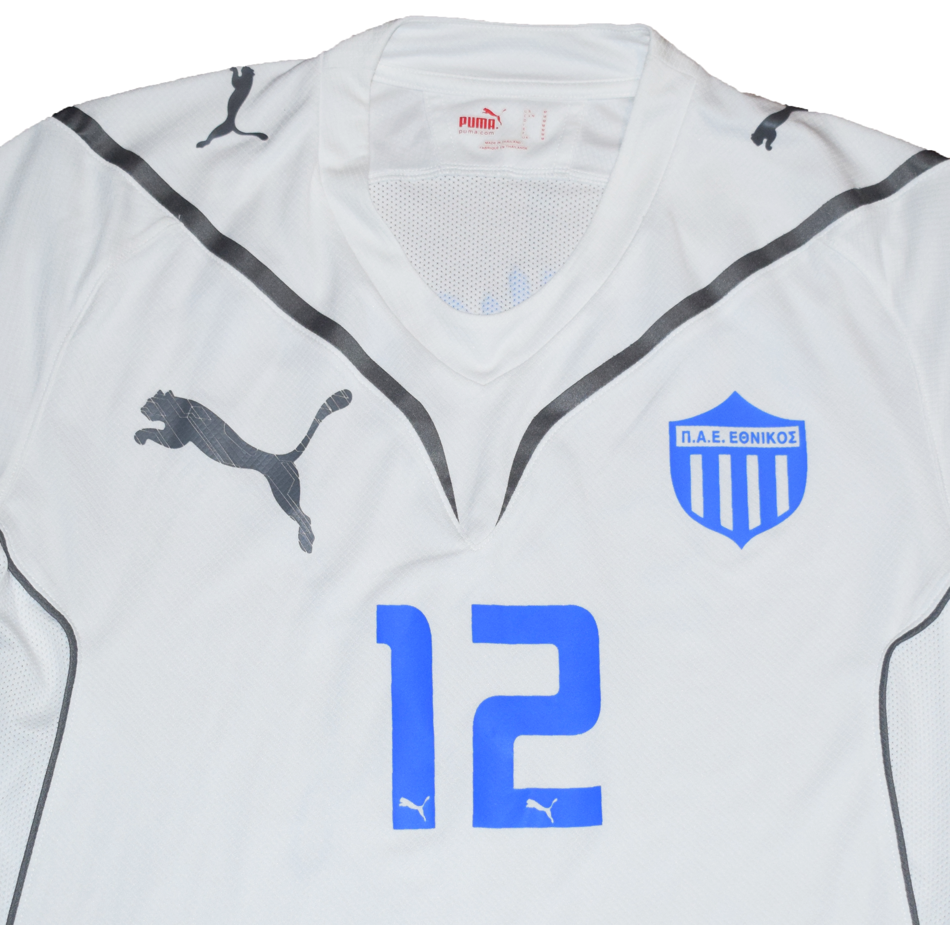 This rare Ethnikos Piraeus home shirt from the 2011/12 season showcases a minimalist white design, true to the club’s traditional colors. The PUMA template reflects early 2010s aesthetics.
