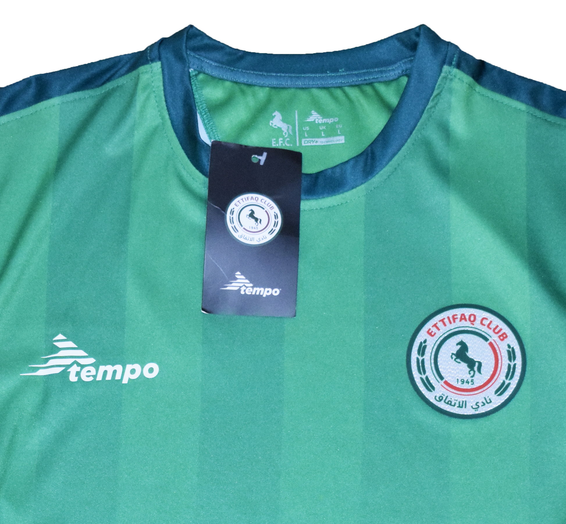 Show your support for Ettifaq FC with the official 2023/24 home kit, designed by Tempo. This bold green jersey reflects the club’s proud history and evolving ambition in the Saudi Pro League. Clean lines, premium materials, and the iconic club crest make this a standout piece for fans and collectors alike.