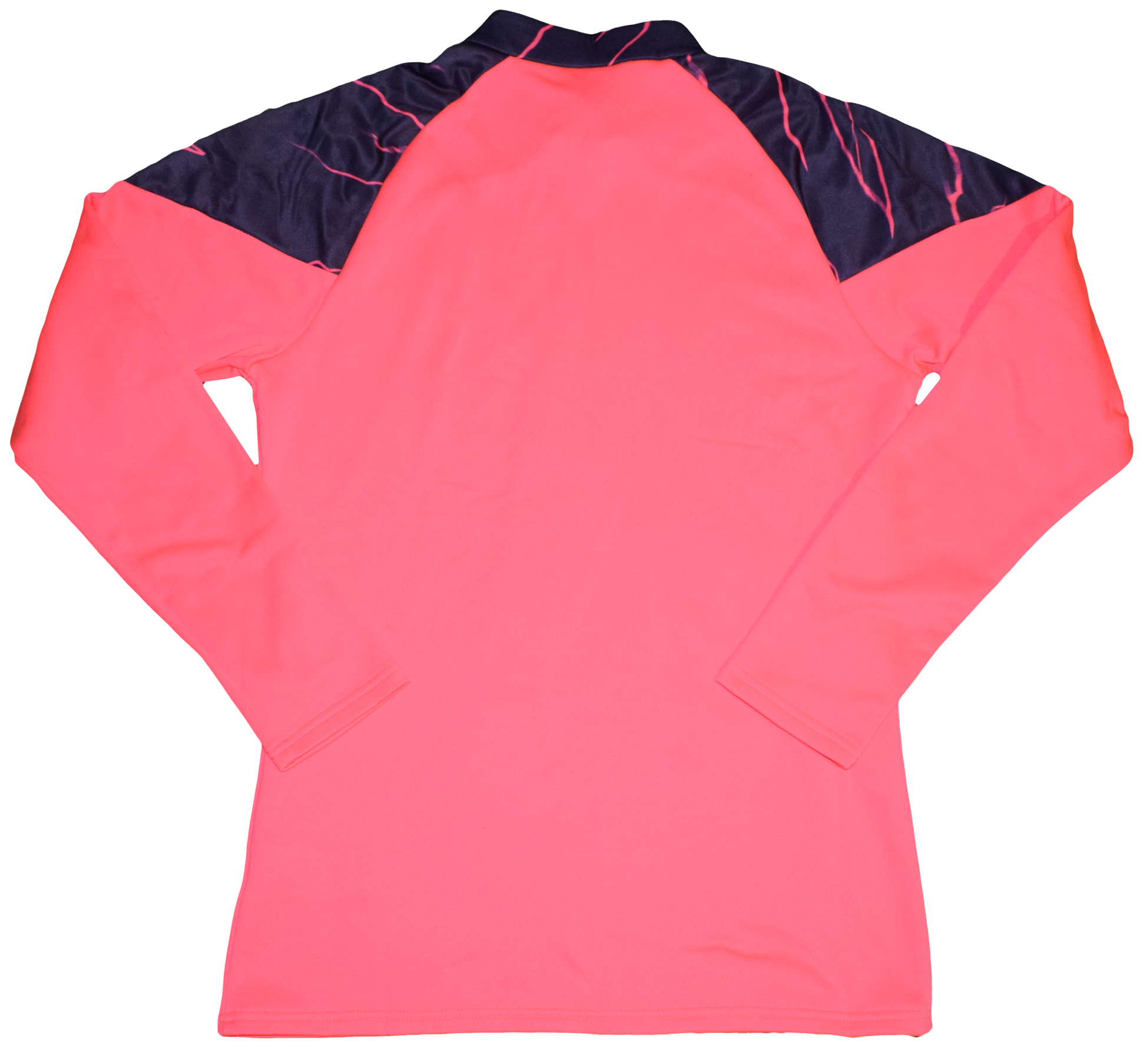 Official Manchester City half-zip training top from the 2023/24 season, made by Puma. Comes brand new with tags (BNWT) and features a vibrant pink design with subtle tonal graphics and the club crest printed on the chest. Designed for lightweight performance and comfort, as worn by players during training sessions.