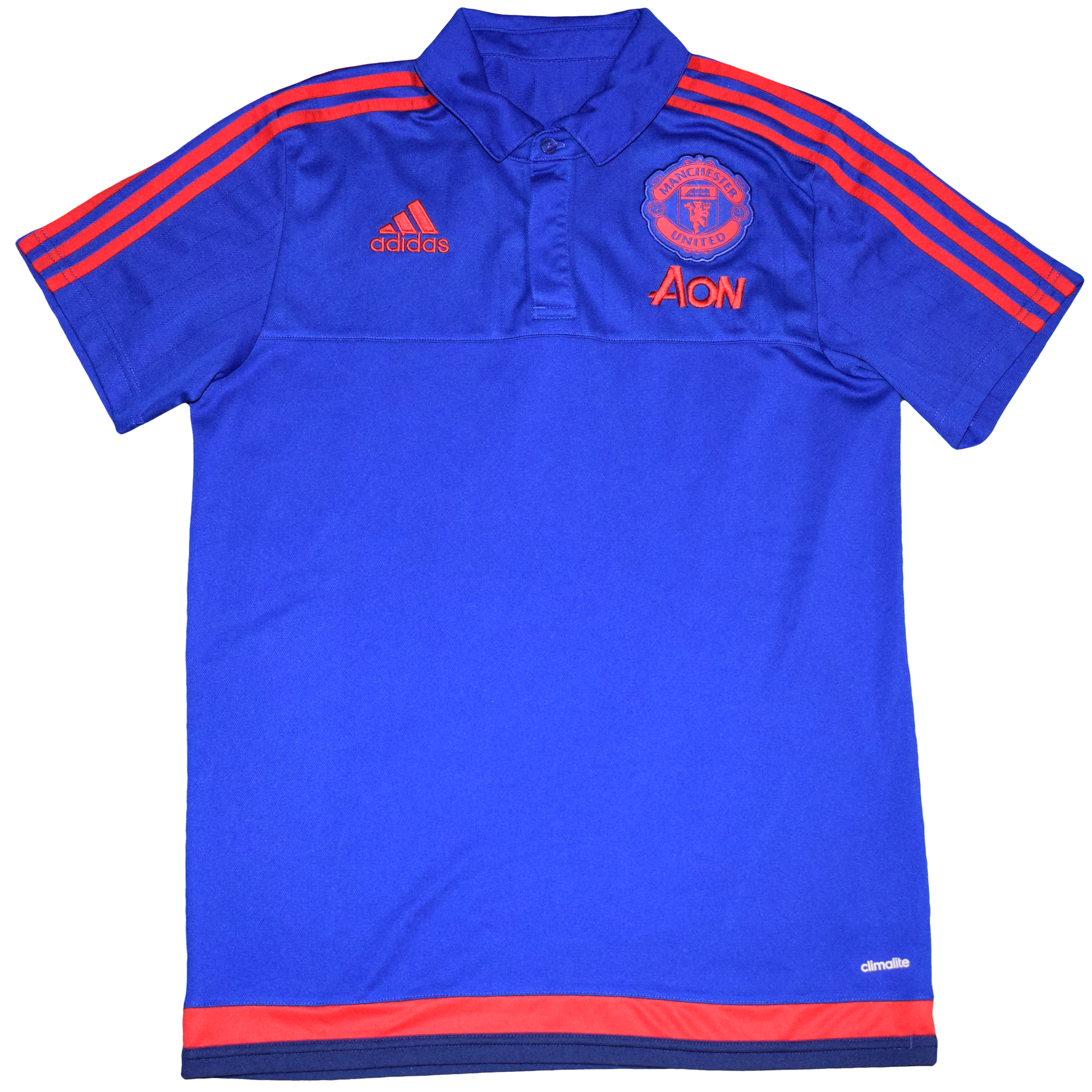 Official Manchester United training polo from the 2015/16 season, crafted by Adidas in blue with red detailing. Lightweight and comfortable, it’s designed for training sessions while showcasing the club’s iconic colors.