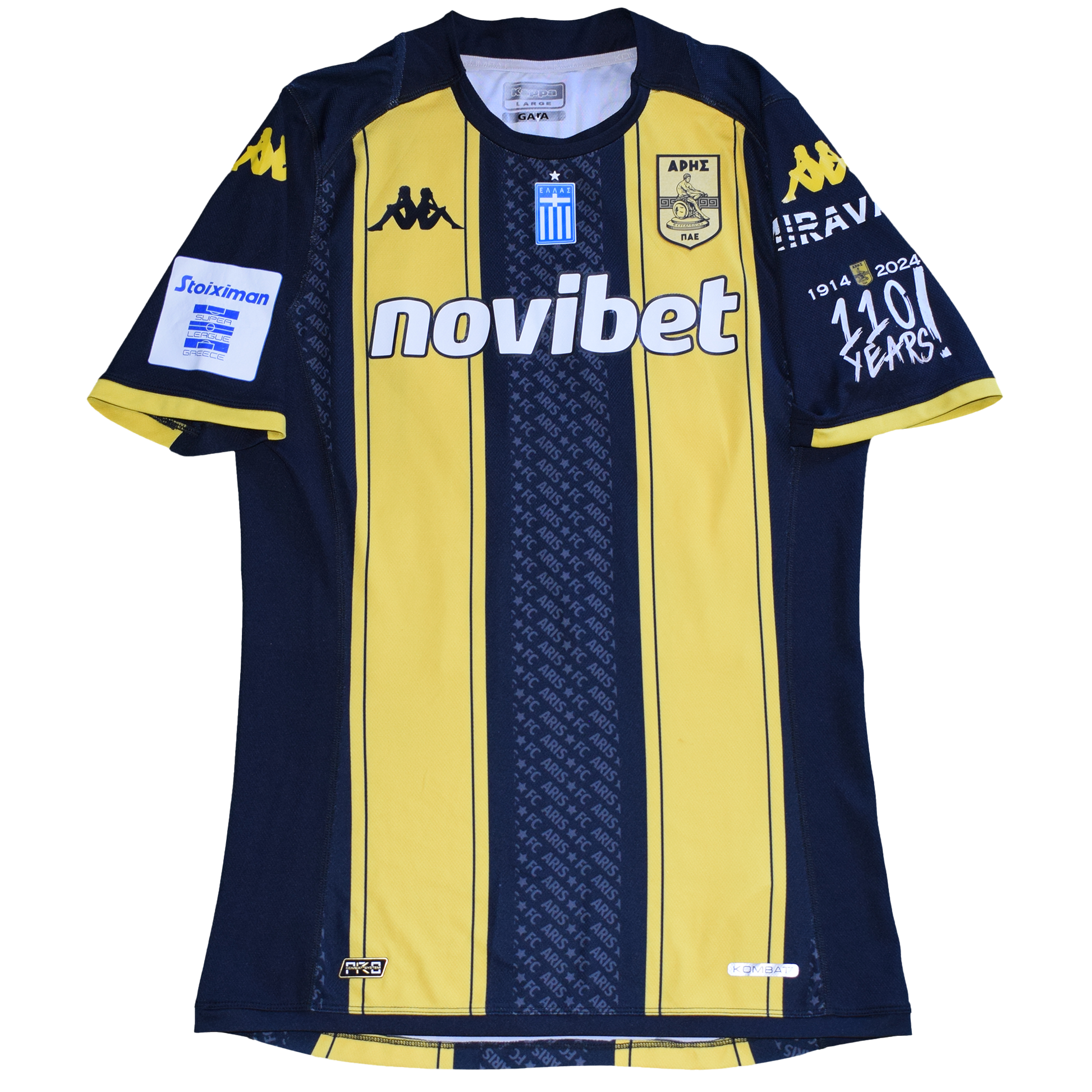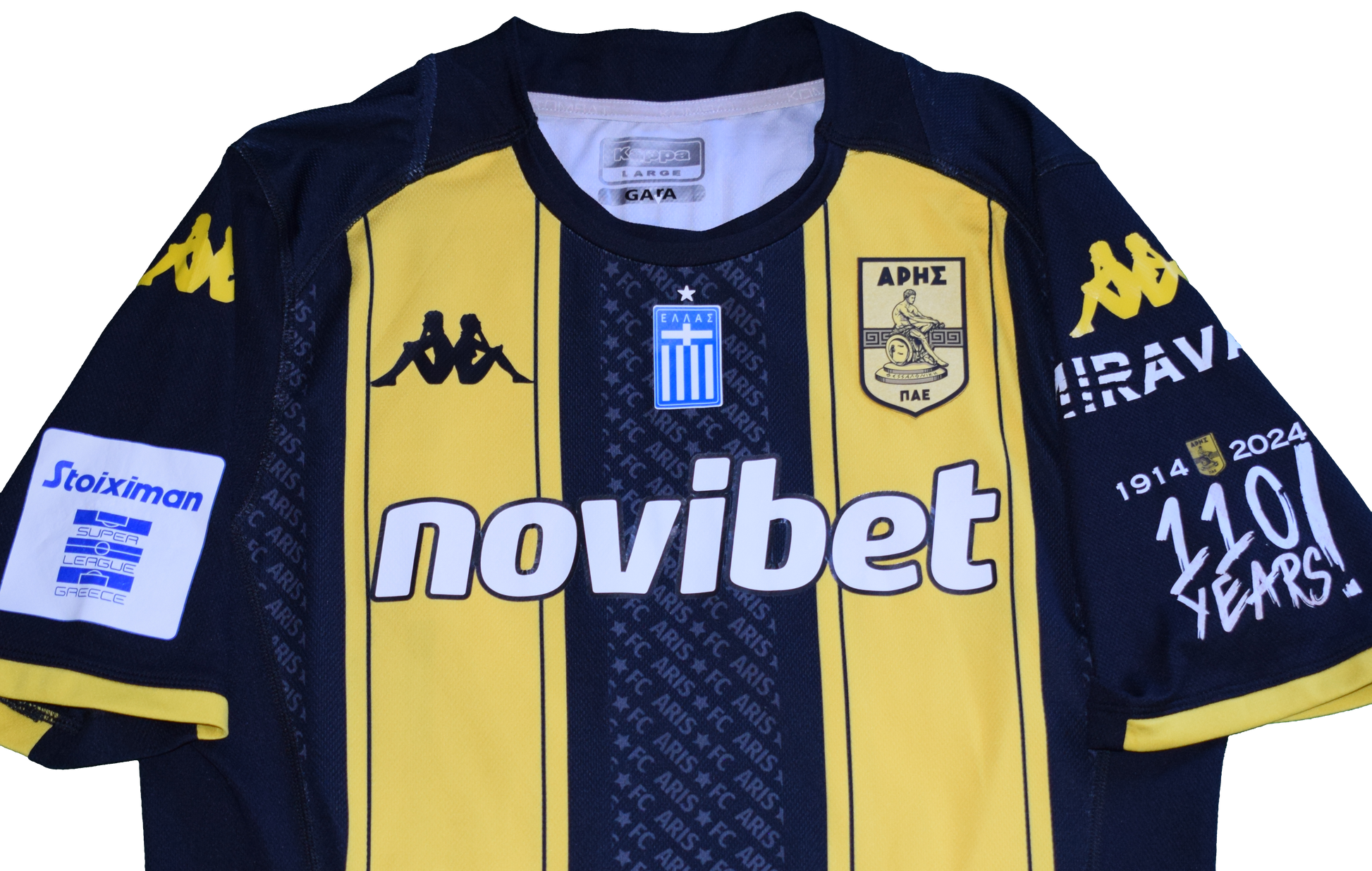 The Aris vs. PAOK derby, known as the "Derby of Northern Greece," is one of the most intense and passionate rivalries in Greek football. This is a victorious matchworn shirt by Moses Odubajo. He played the entire 90 minutes. It has the exclusive Stixoiman Superleague Patch. Additionaly it's a rare Kappa Kombat Pro jersey.