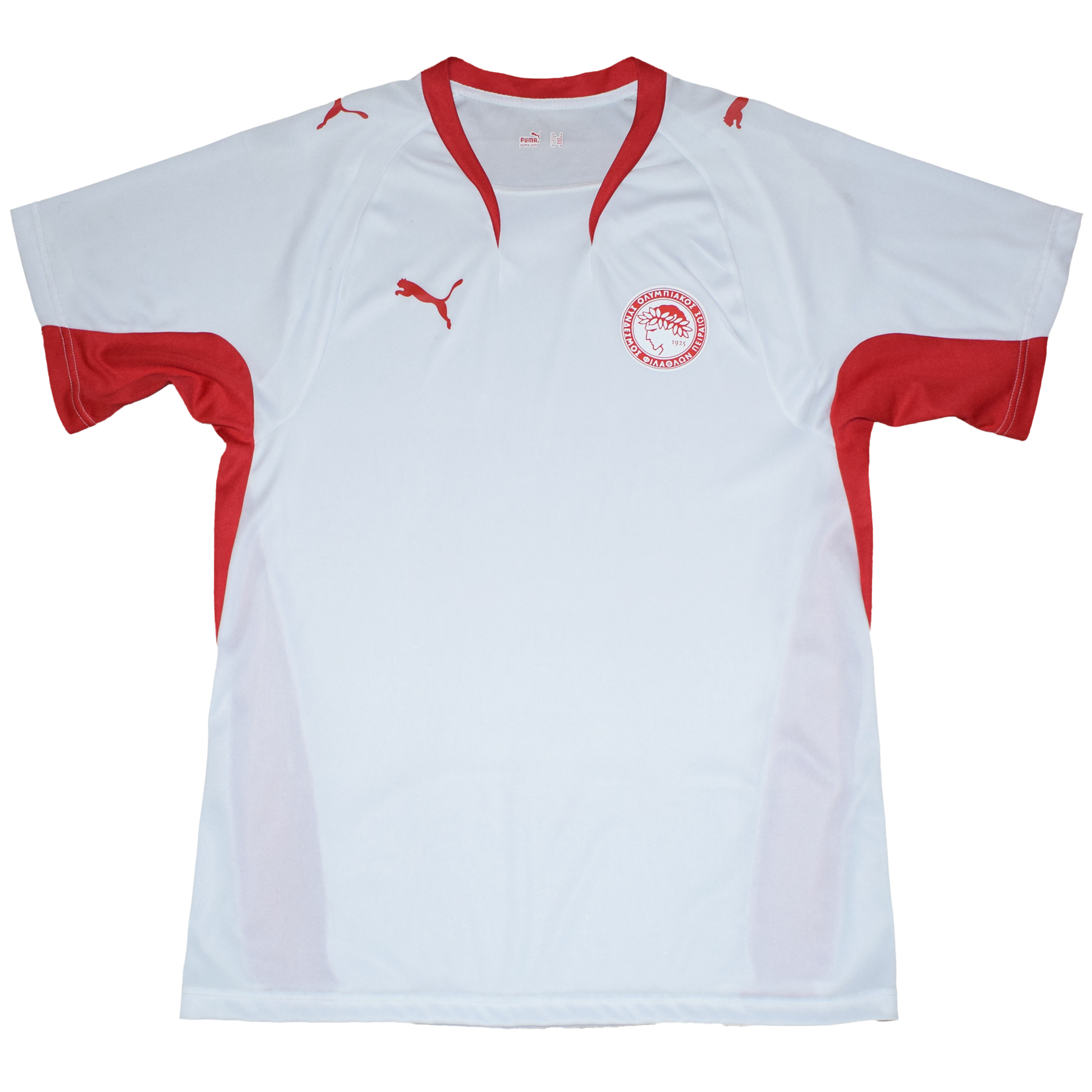 Train like a champion with this official Olympiacos 2007/08 Puma training top. Worn during a historic season when Olympiacos dominated Greece and made waves in Europe, this sleek white and red design features the club's iconic emblem and Puma logos. Lightweight, breathable, and built for performance, it's perfect for match days, workouts, or any true fan’s collection. Size is Medium.