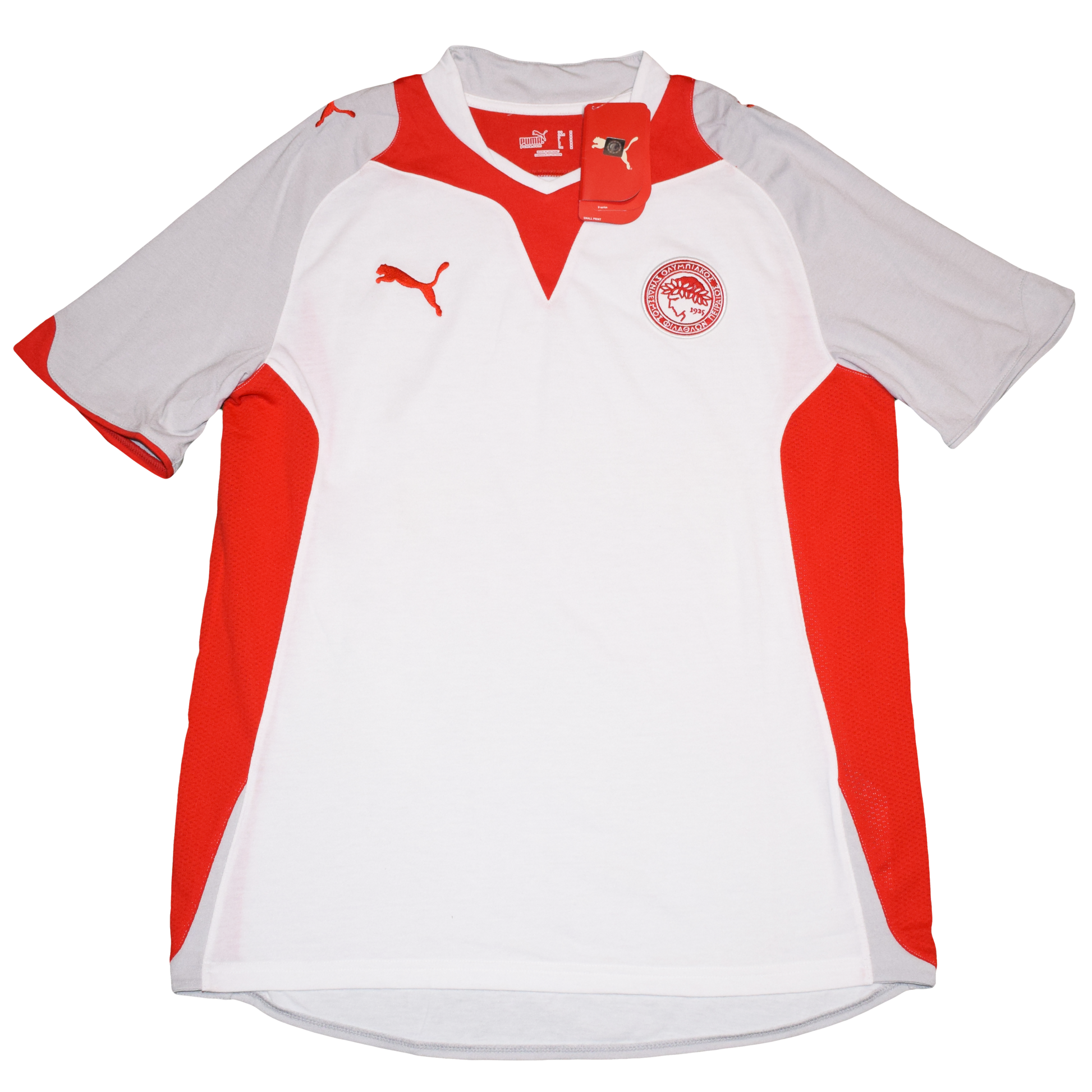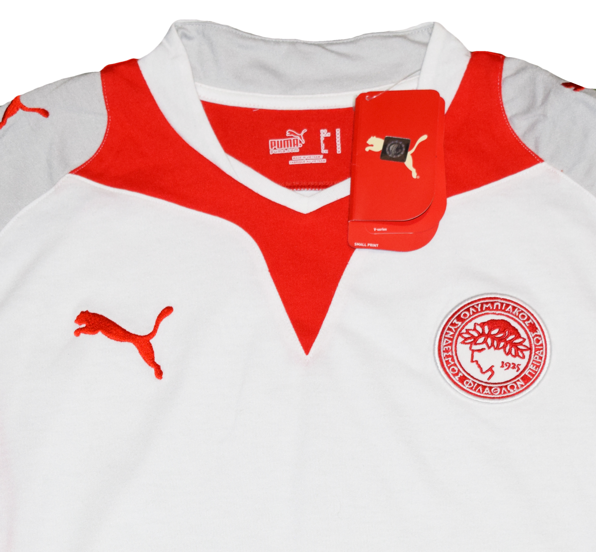 Authentic Olympiacos training shirt from the 2009/10 season, size Medium, brand new with tags (BNWT). Made by Puma, this shirt features a crisp white design with clean lines, ideal for training, casual wear, or as part of a collection.