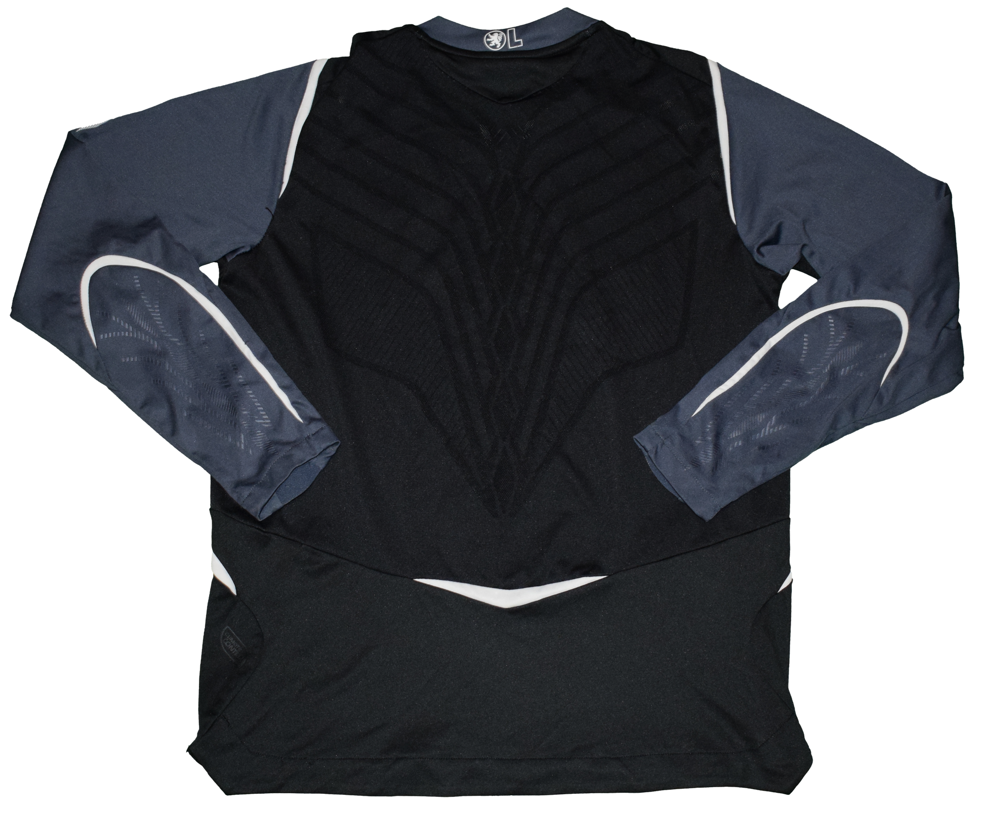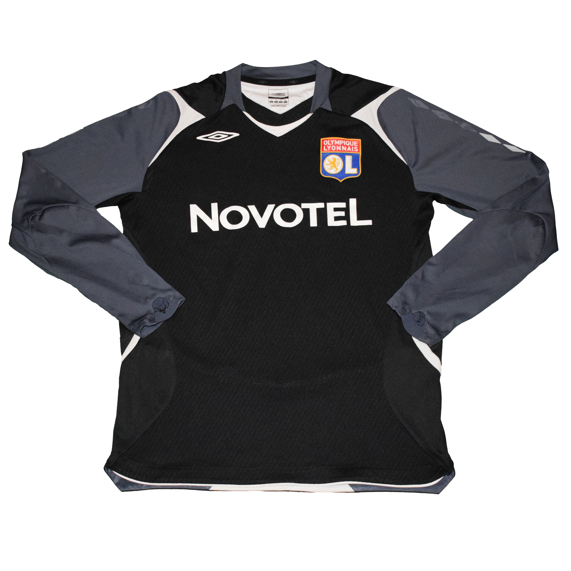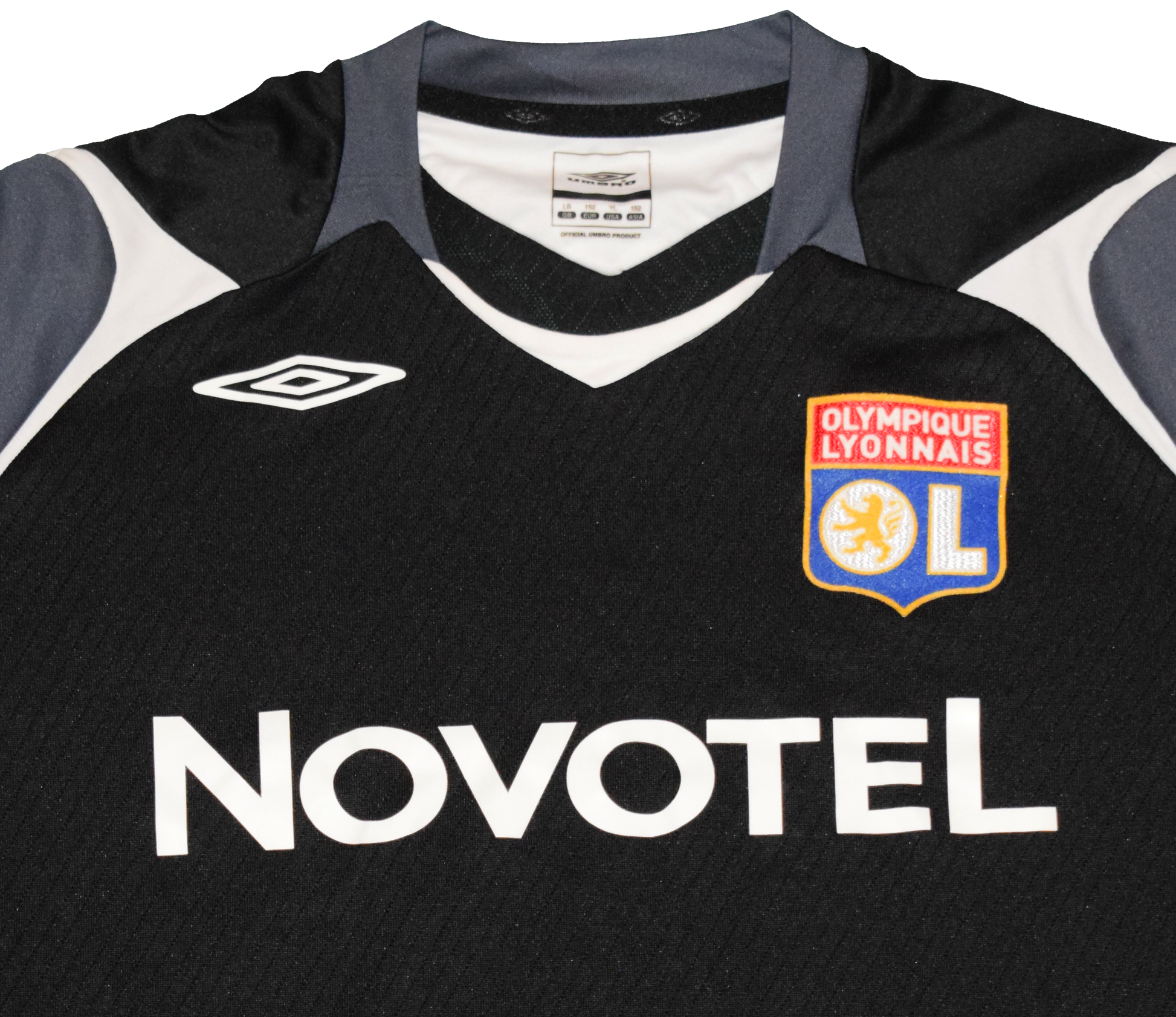 This sharp black and grey goalkeeper jersey from the 2008/09 season features Umbro craftsmanship and the classic NOVOTEL sponsor — an iconic look from a golden era for Lyon.