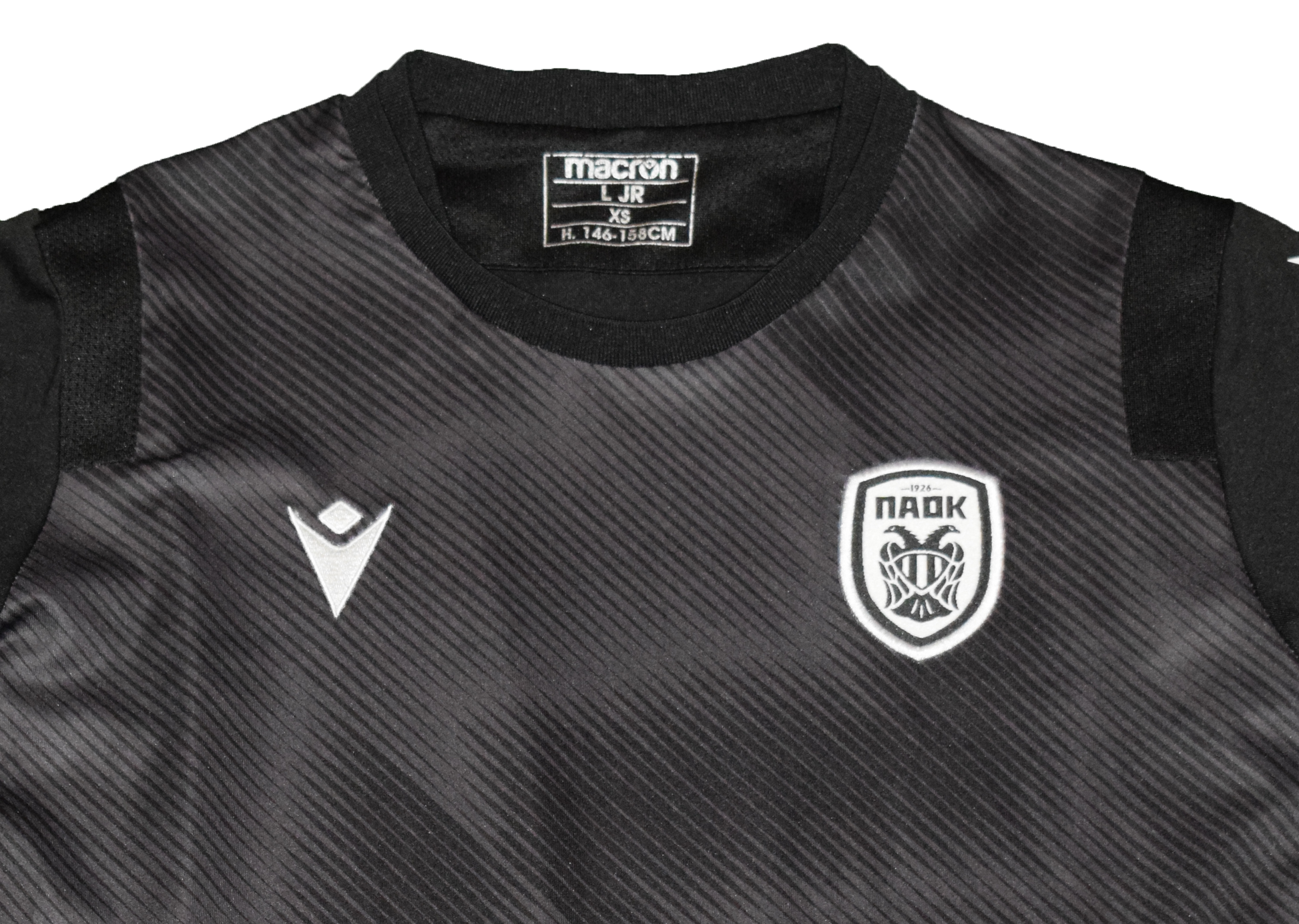 This is an official PAOK FC 2020/21 training kit, Youth Large, in sleek black, made by Macron. Designed for performance and comfort, this lightweight top was used by the squad during training sessions in a season where PAOK made noise both domestically and in Europe.