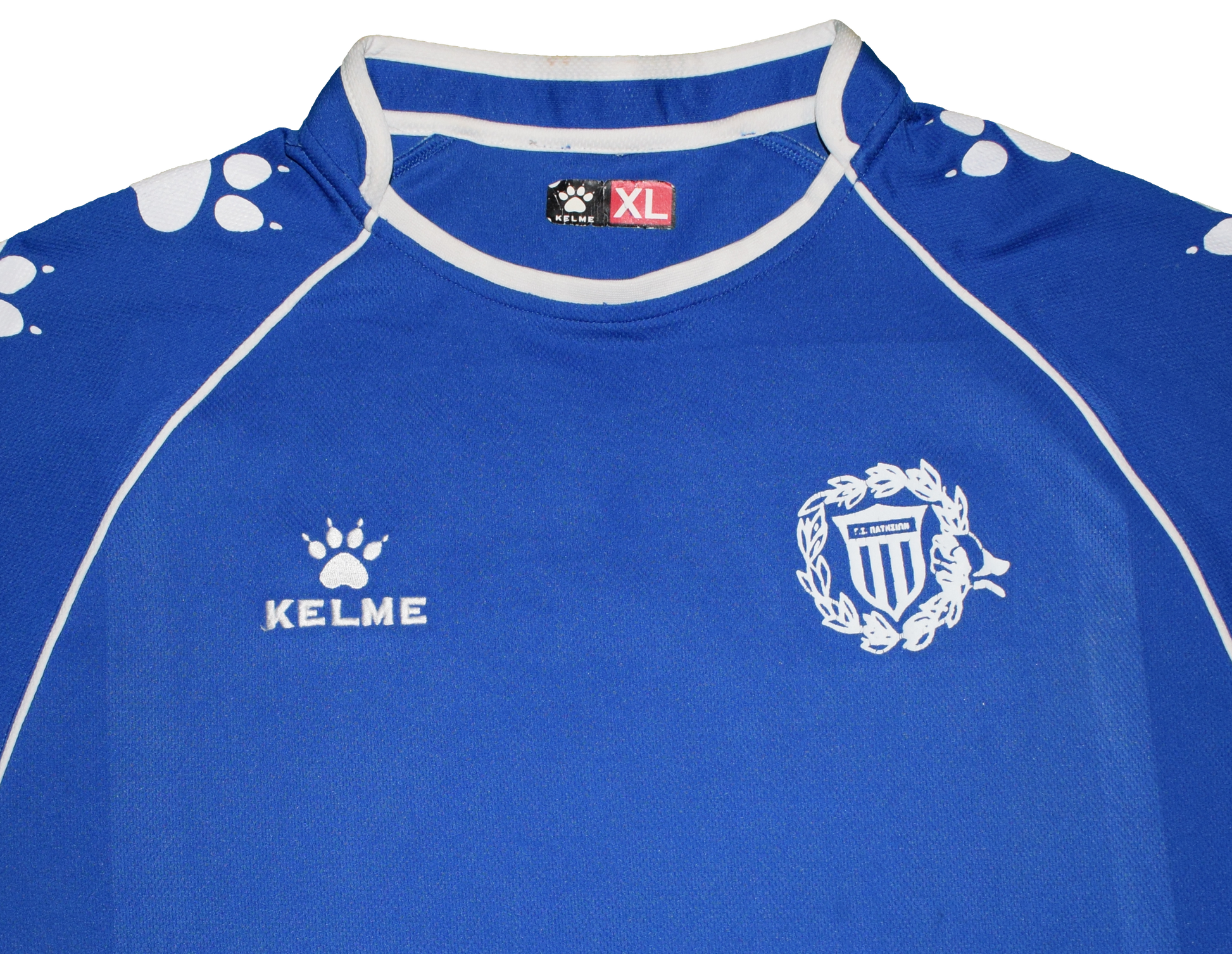This fanela looks insane ! Made by Kelme this Patisia kit is a size XL and with an official number ''9'' heat printed on the back indicating that it belonged to the squad's striker. Minor fade can be seen on the badge.