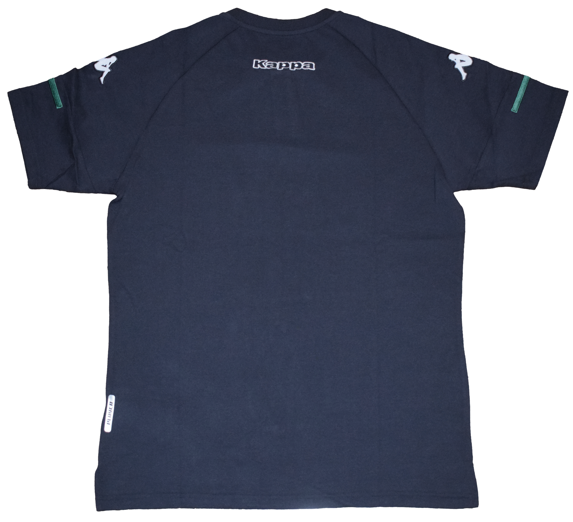 Official Kappa training polo worn by staff and squad during the 2020/21 season. Stylish grey design with embroidered club crest, classic Kappa logos on shoulders, and a subtle green collar detail. Features two-button henley-style neck. Brand new with tags.