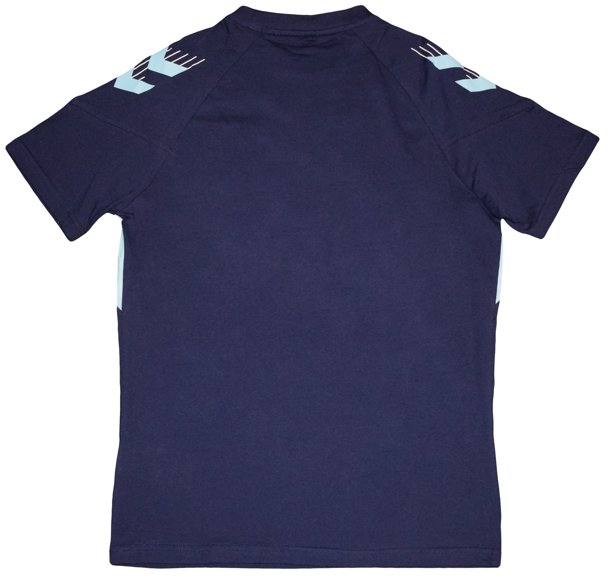 Design: Navy base with light blue side panels and classic Hummel chevrons