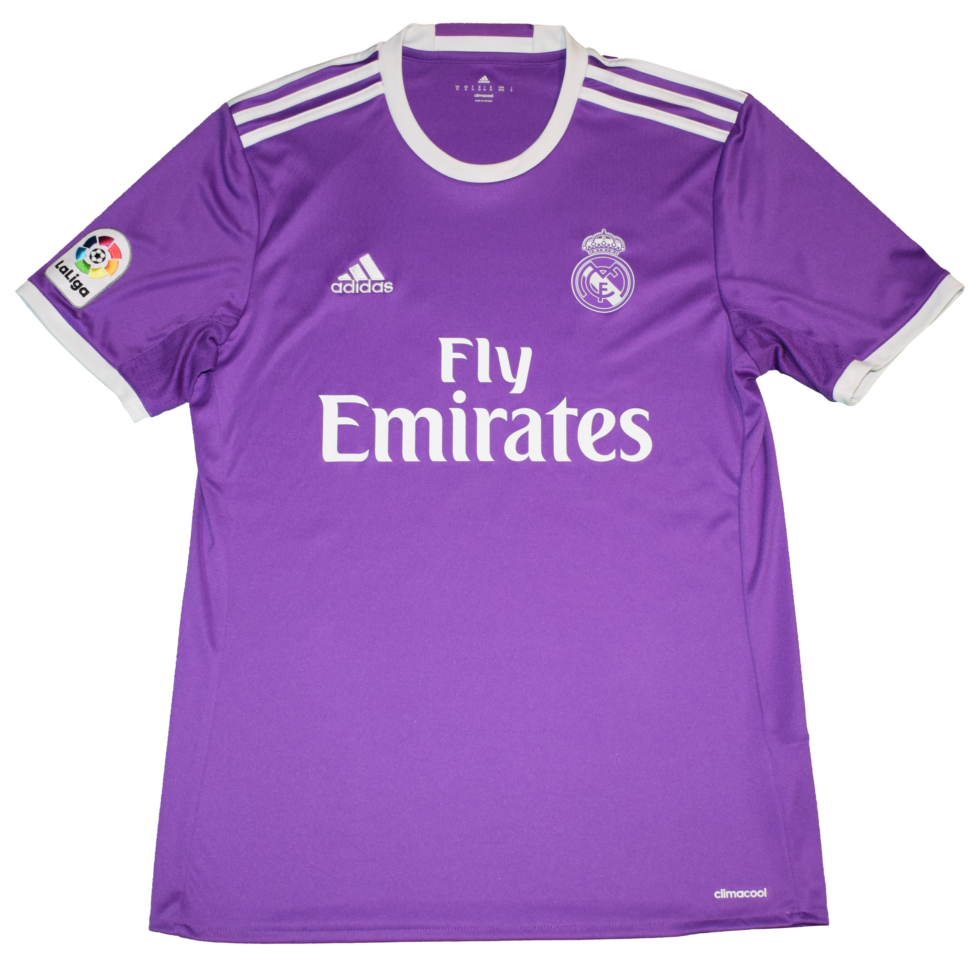 Step onto the pitch—or the streets—in iconic style with the Real Madrid 2016/17 Away Kit. Designed in a bold royal purple, this kit honors the club’s storied legacy while nodding to classic looks from the past. Engineered by adidas with Climacool technology, it's built for comfort, breathability, and high performance. Size Medium. Excellent condition.