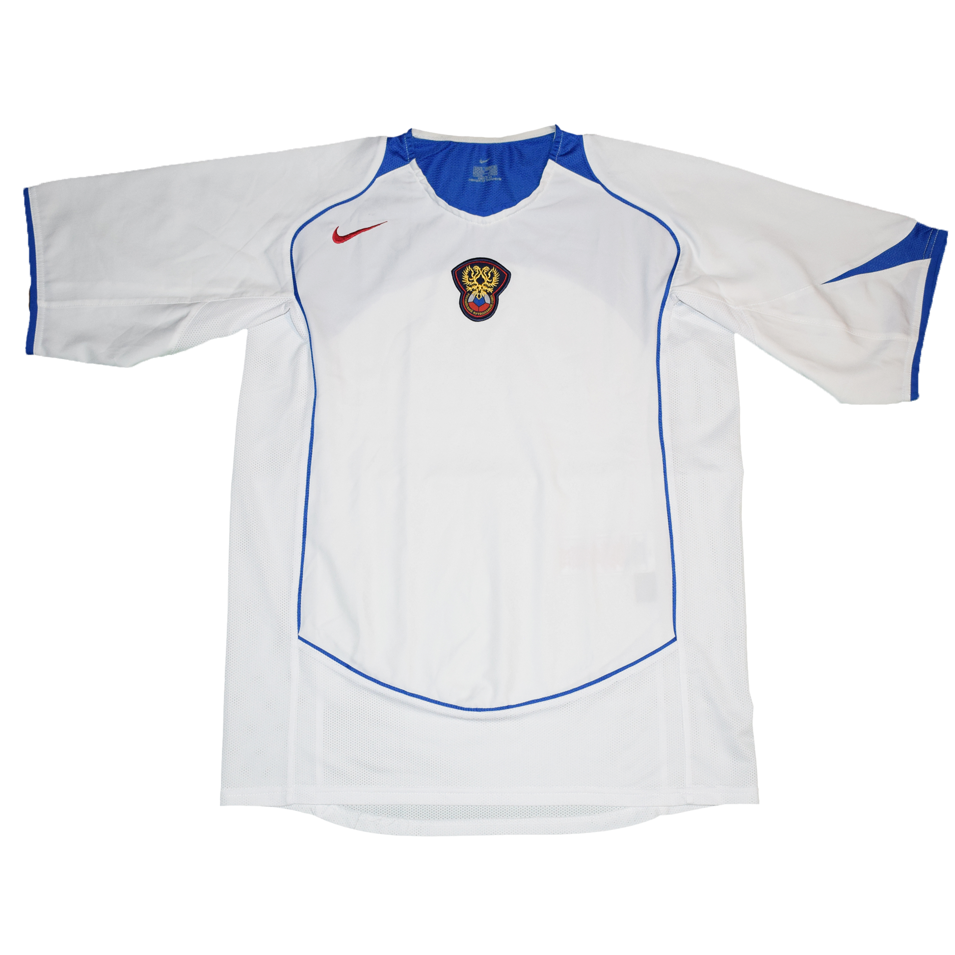 An iconic kit for a less legendary Euro 2004 performance. The size is Medium and in excellent condition. It was manufactured by Nike in their iconic Total90 era.