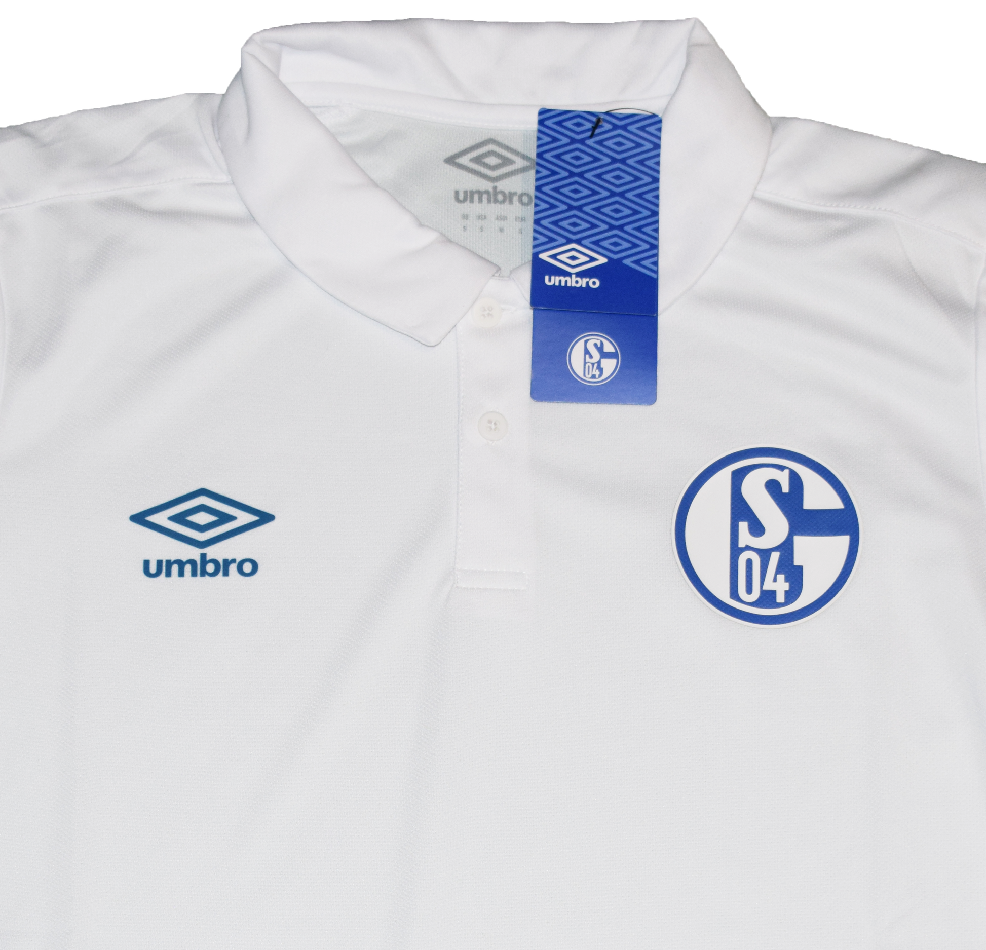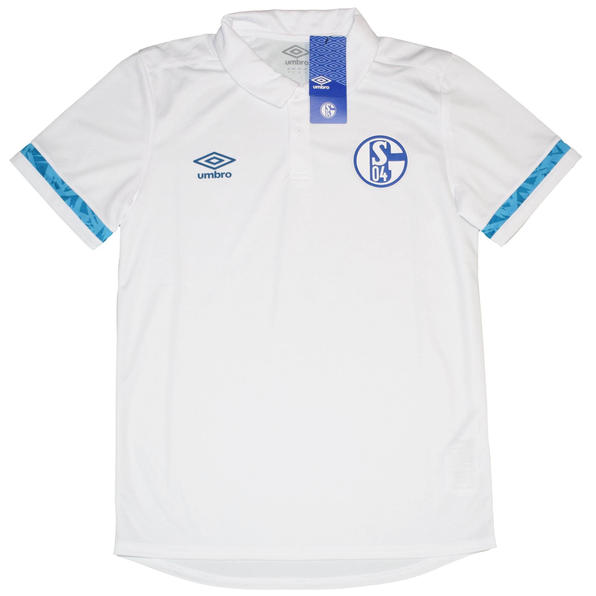 Stay sharp on and off the pitch with this official Schalke 04 2020/21 Training Polo by Umbro. This sleek white polo features subtle detailing, the iconic Schalke crest, and Umbro logo – offering a clean, professional look with breathable performance fabric. Brand new with tags (BNWT) and in Small size.