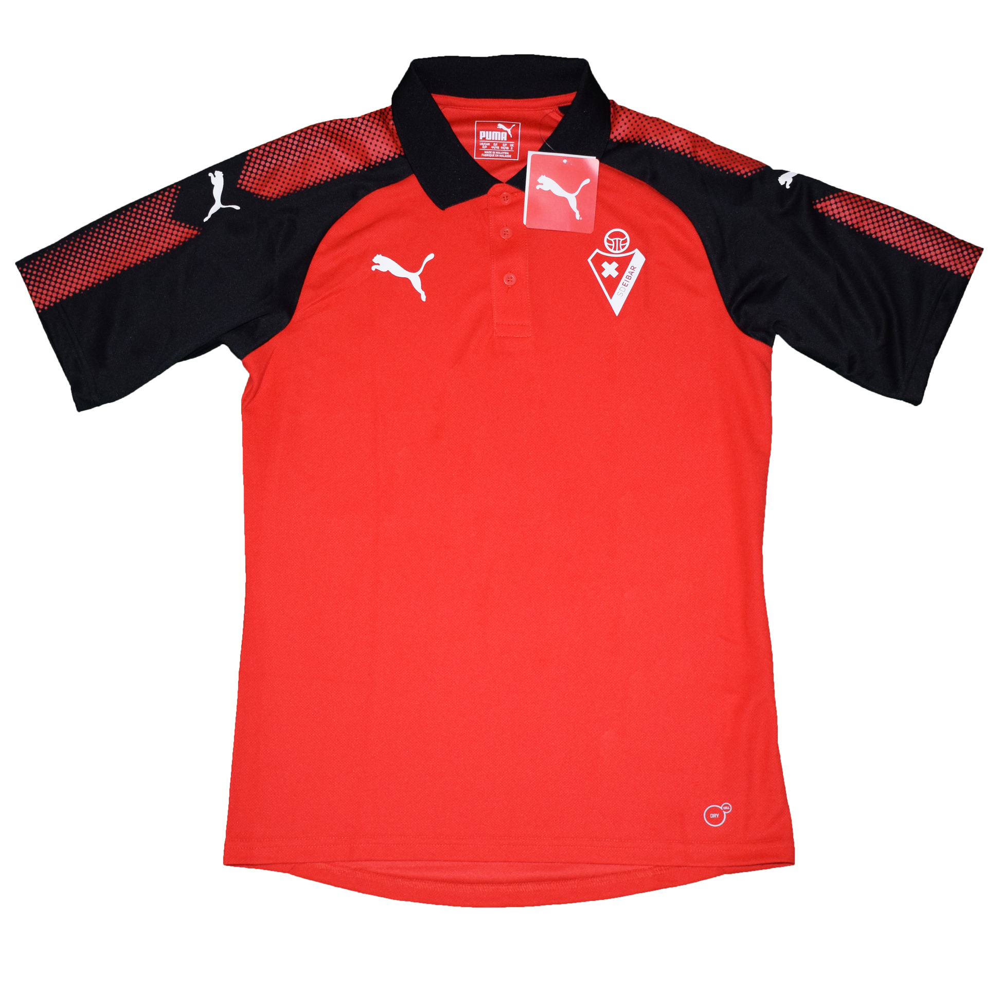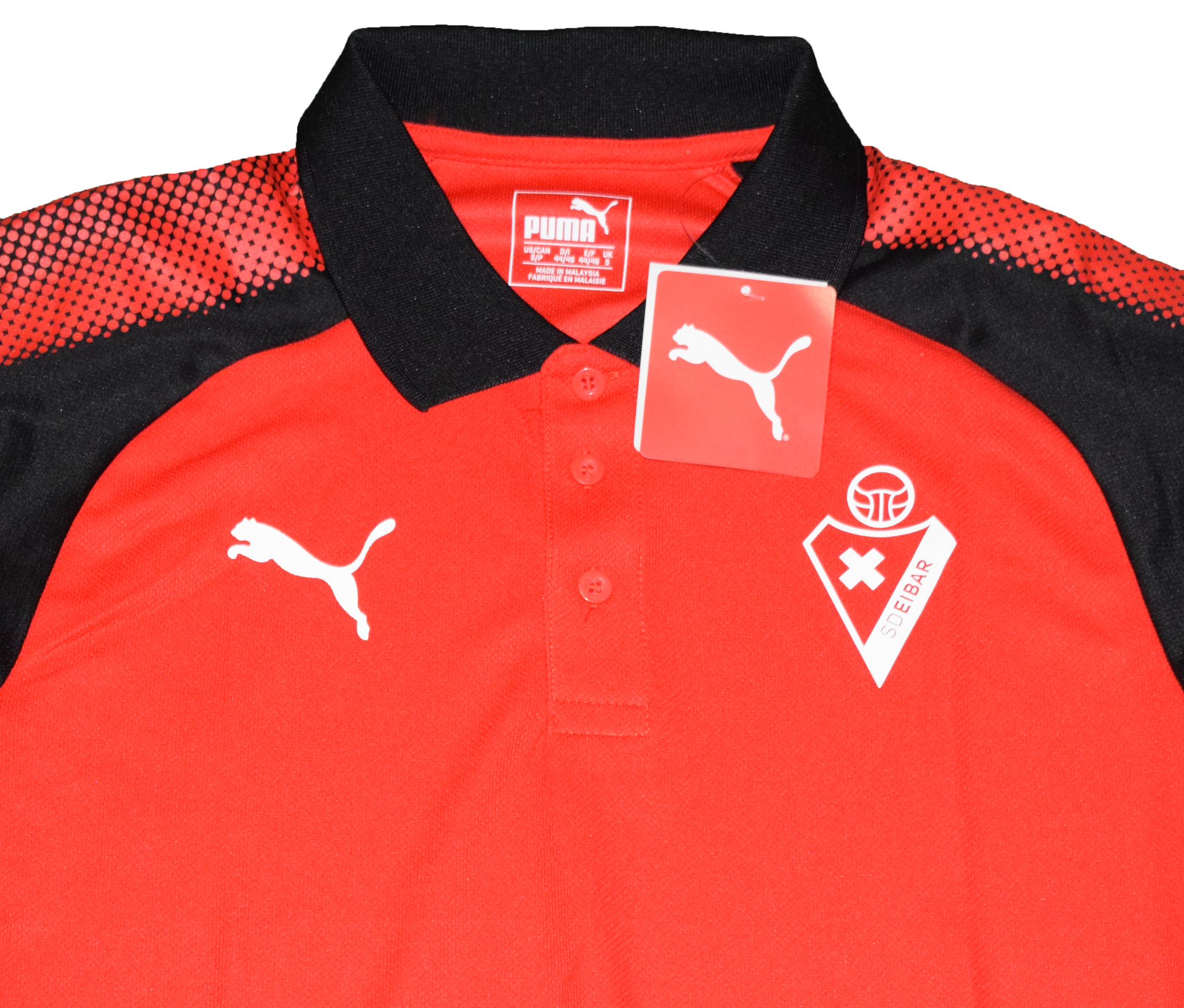 Show your support for Los Armeros with this official SD Eibar 2018/19 Puma Training Polo, designed for both performance and style. This red and black polo features Puma’s signature athletic template from the 2018/19 season, with bold red as the base and contrasting black sleeves. The design is accented by subtle tonal graphic patterns across the sleeves and shoulders, capturing the energy of match preparation.
