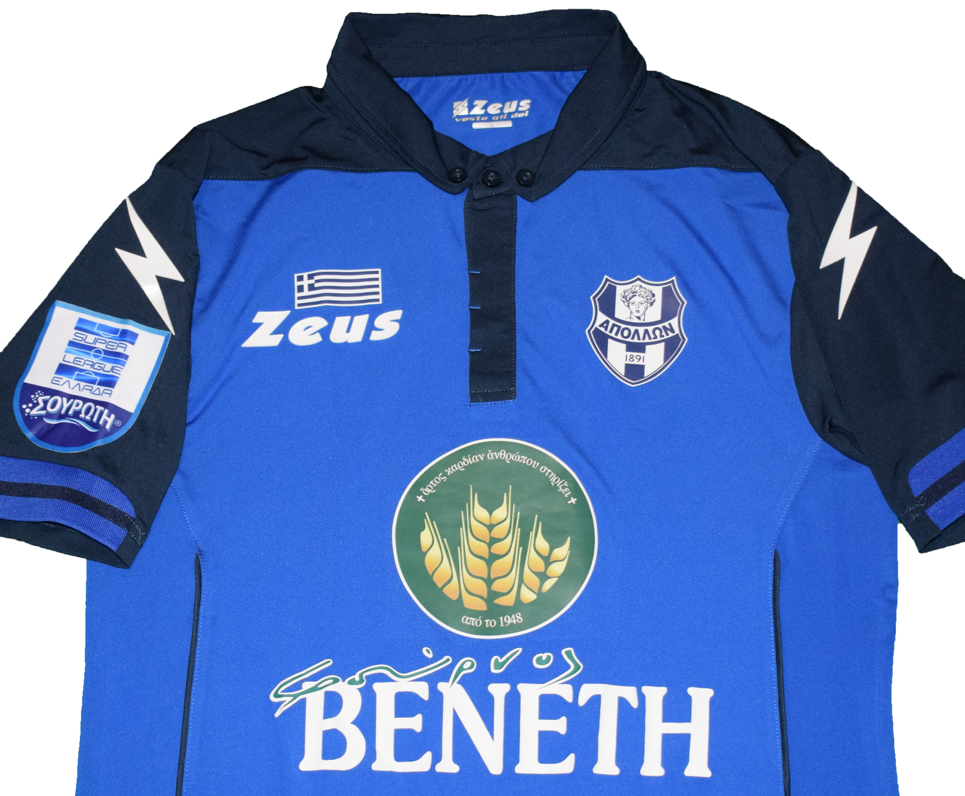 While the specific match in which this shirt was worn is unknown, it was acquired directly from a club crew member, ensuring its authenticity as a matchworn item. The kit was never available for sale. It was made by Zeus, it's in perfect condition and features a Greek flag on the right chest. Features Greek Super League patch that wasn't available on sale either.
