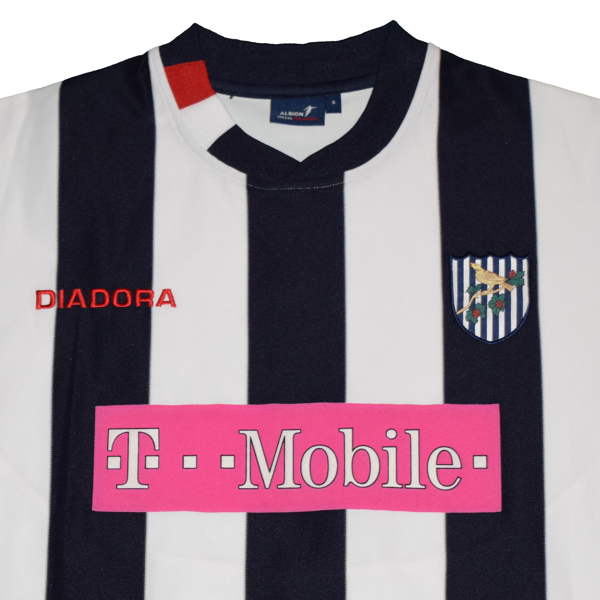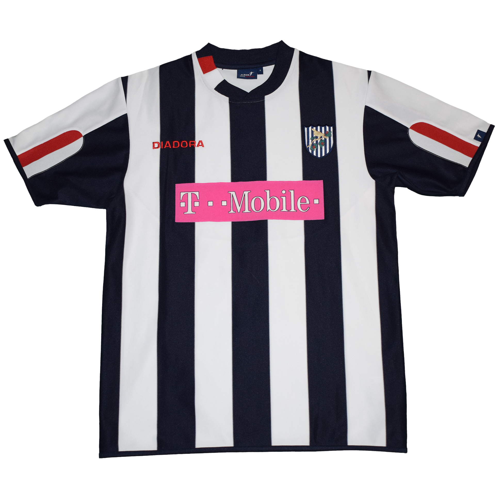 One of our favorite kits here at Fanela Club. This stunning jersey is in excellent condition and a loose size small. It has a puffy sponsor and it was manufactured by Diadora. It has a retro badge for WBA.